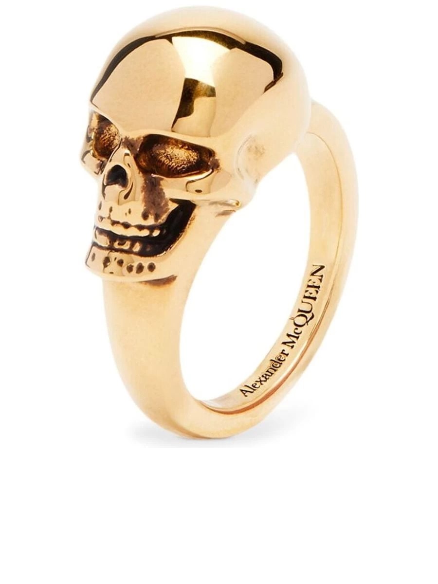 Elegance and edge collide in this exquisite ring, a testament to timeless style. The antique brass composition is sculpted into a signature skull emblem, hallmark of the iconic label, while the engraved logo infuses a dash of brand prestige. A timeless slip-on style anchors this piece as a staple of any refined jewellery collection.