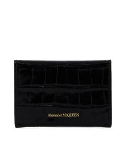 Indulge in the opulent craftsmanship of an Alexander McQueen piece with this exquisite crocodile-embossed leather cardholder. It boasts the iconic gold-tone metal Skull, dazzling with crystals, ensuring your essentials are secured with a touch of luxury. The design features a snap summary closure and is thoughtfully lined with leather, providing two flat pockets to store your cards stylishly and securely.