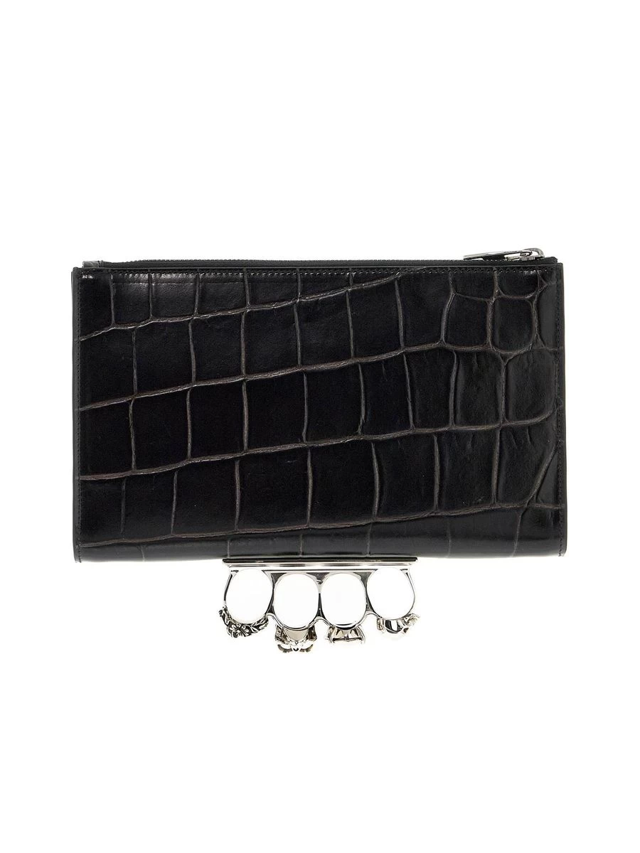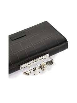 Indulge in the luxury of this croco-embossed leather pouch, a fusion of sleek design and practicality. The piece is intricately crafted with the iconic silver-finished Four Rings, offering an air of unmistakable elegance. Its streamlined profile conceals a meticulously organized interior, complete with a suede microfiber lining, an open pocket, and a designated credit card slot, ensuring that essentials are always at hand with a touch of sophistication.