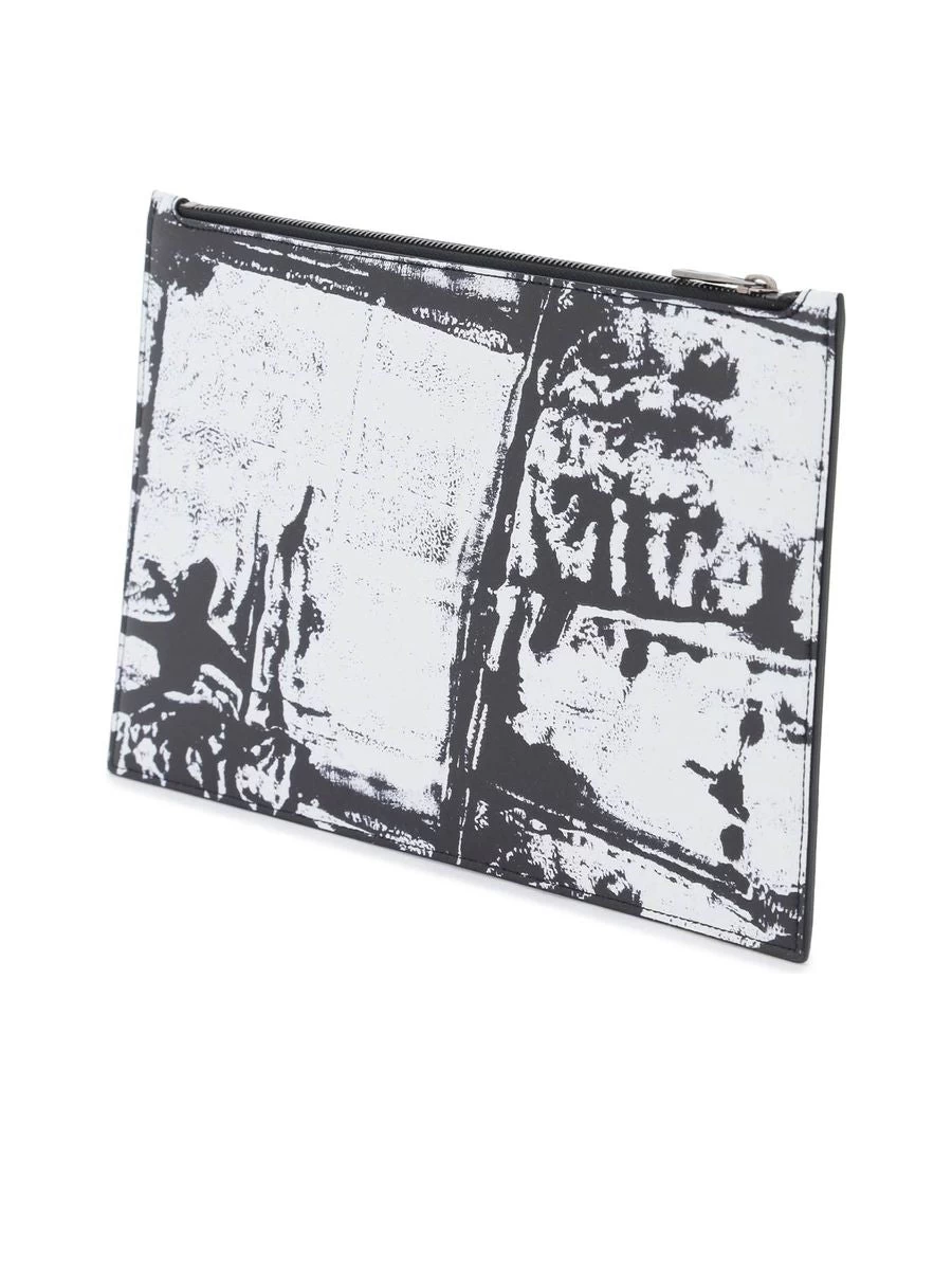 Immerse yourself in the rebellious charm of this sleek flat pouch, boasting a bold graffiti print that channels urban edge. Crafted with utmost care from smooth leather, the design features a durable zip closure and a meticulously organized interior, complete with card slots for seamless daily use. A piece that unites practicality with an audacious artistic spirit.