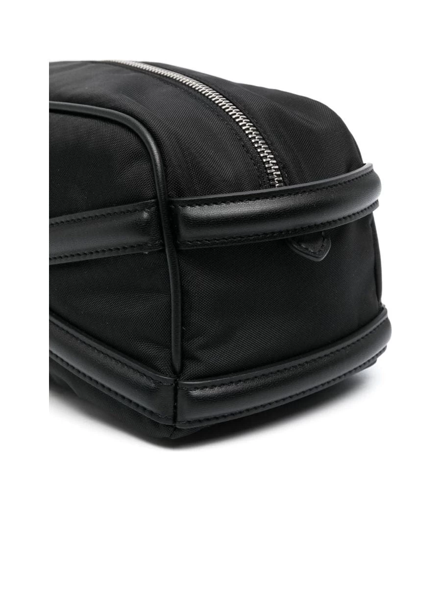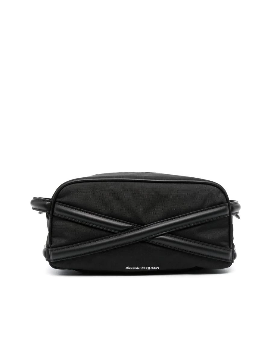 Indulge in the finesse of Alexander McQueen’s Harness wash bag, designed to add a touch of sophistication to your travels. This elegant accessory is graced with a leather trim and logo lettering for an unmistakable touch of class. Boasting a practical top zip fastening and handy side handles, it opens to reveal a capacious main compartment to accommodate all your grooming essentials.
