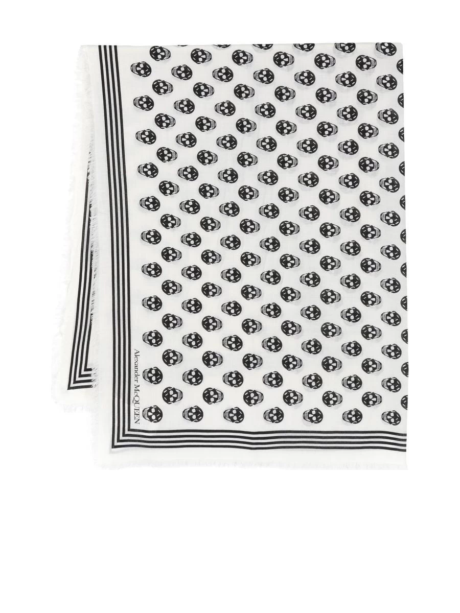 Indulge in the elegance of this exquisite scarf, crafted from the finest wool for unrivalled comfort. The design showcases a sophisticated two-tone aesthetic, punctuated by the emblematic skull motif and a subtle soror logo print. The edges are impeccably finished, offering a touch of refinement to your ensemble.