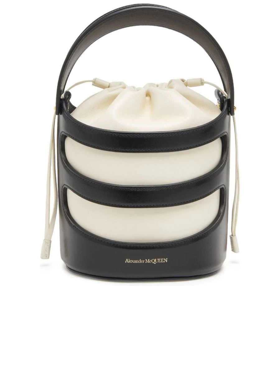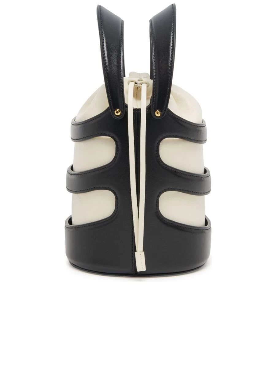 Immerse yourself in the elegance of this caged leather pouch, which embodies a unique blend of functionality and artistry. Crafted in Italy with meticulous attention to detail, it features a stunning gold-tone logo lettering that complements its striking design. The pouch boasts an adjustable and detachable shoulder strap along with two top handles, offering diverse carrying options. Its secure top drawstring fastening ensures your essentials are always well protected within the main compartment.