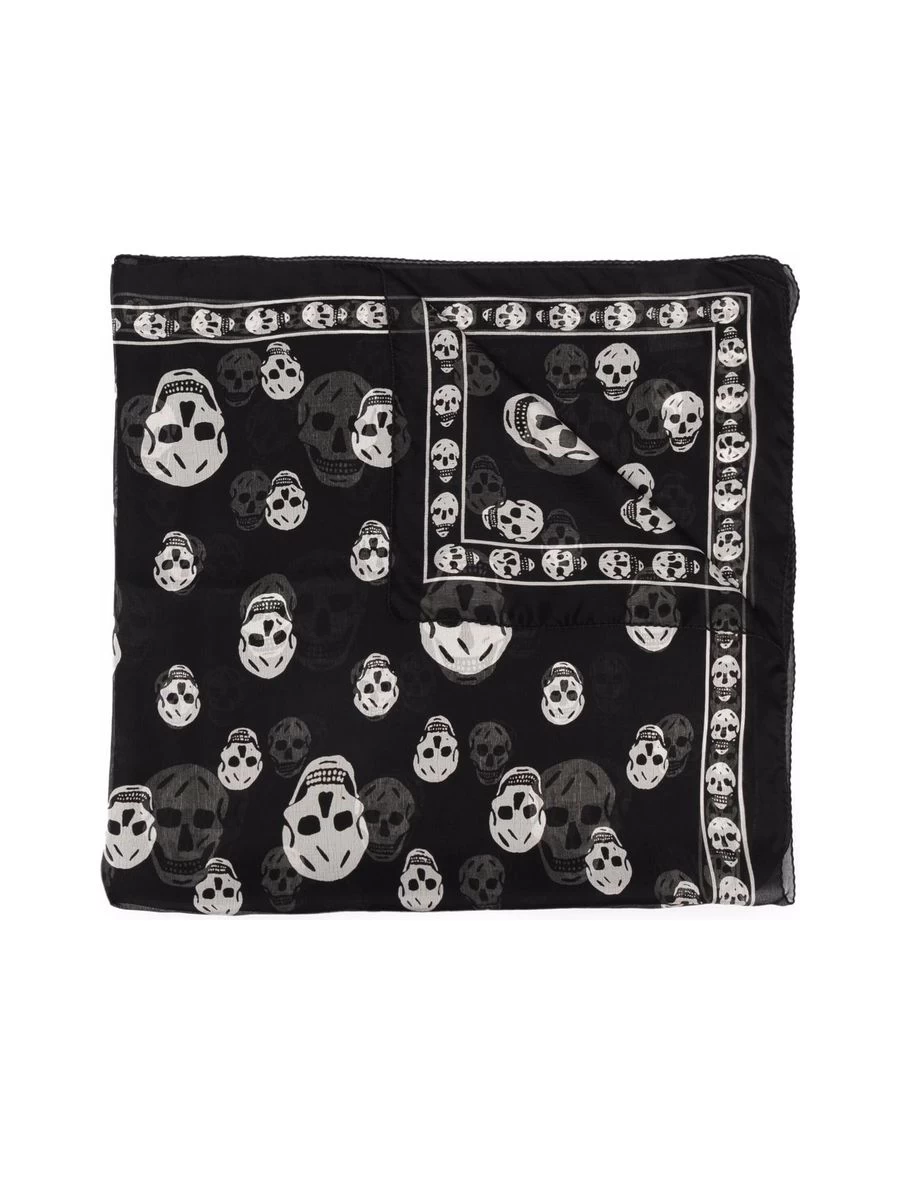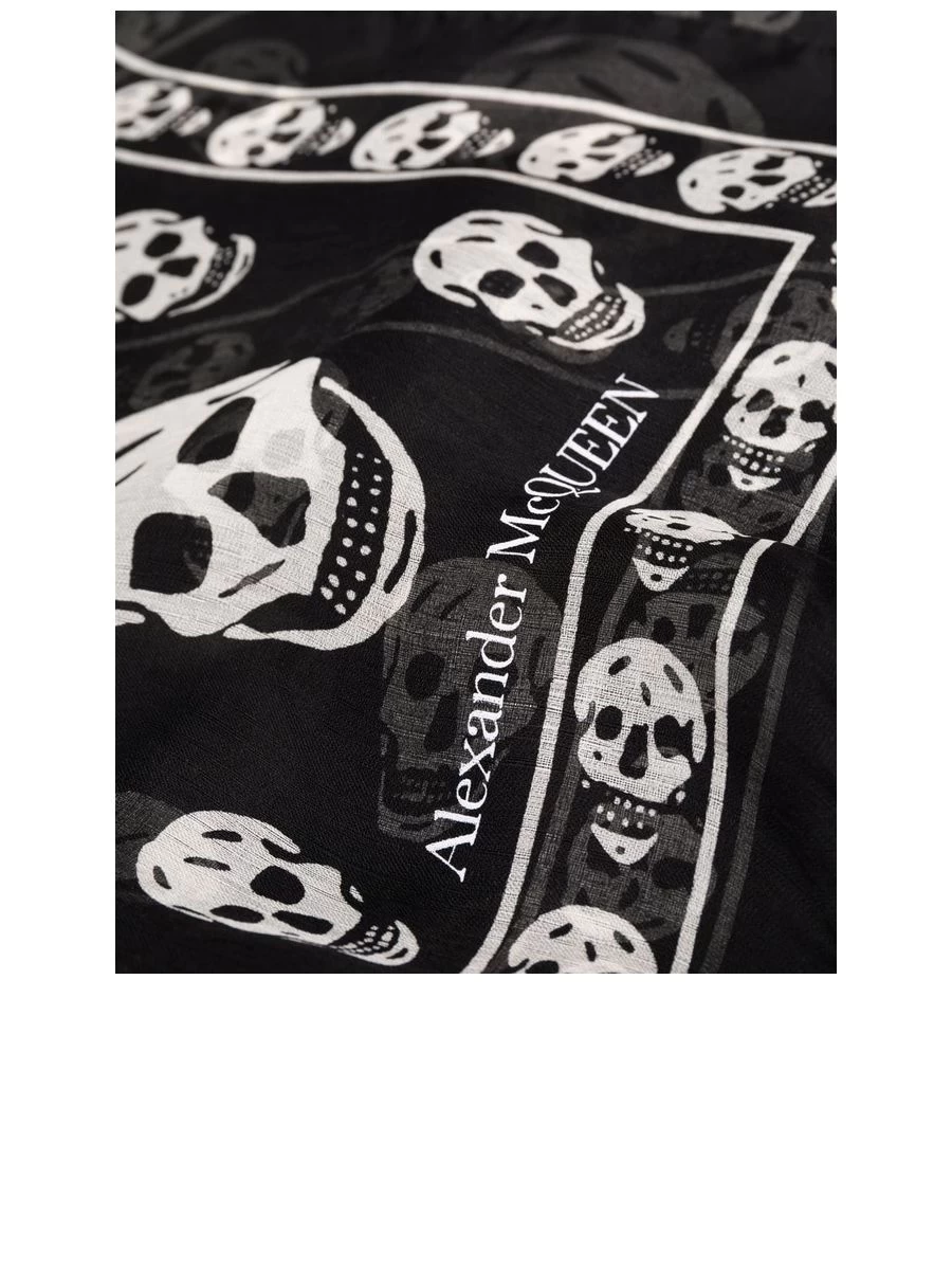 Effortlessly embodying the darkly romantic aesthetic of Alexander McQueen, this lightweight scarf boasts a signature skull print. Crafted from pure silk, its delicate construction is completed with a neatly finished edge. A versatile and stylish accessory that brings an edge to any outfit.