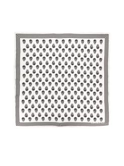 Make a contemporary statement with this striking skull print scarf. Crafted in Italy, this piece showcases Alexander McQueen’s trademark skull motif layered over a stark, striped background, accompanied by the brand’s logo for an unmistakable touch of designer appeal.
