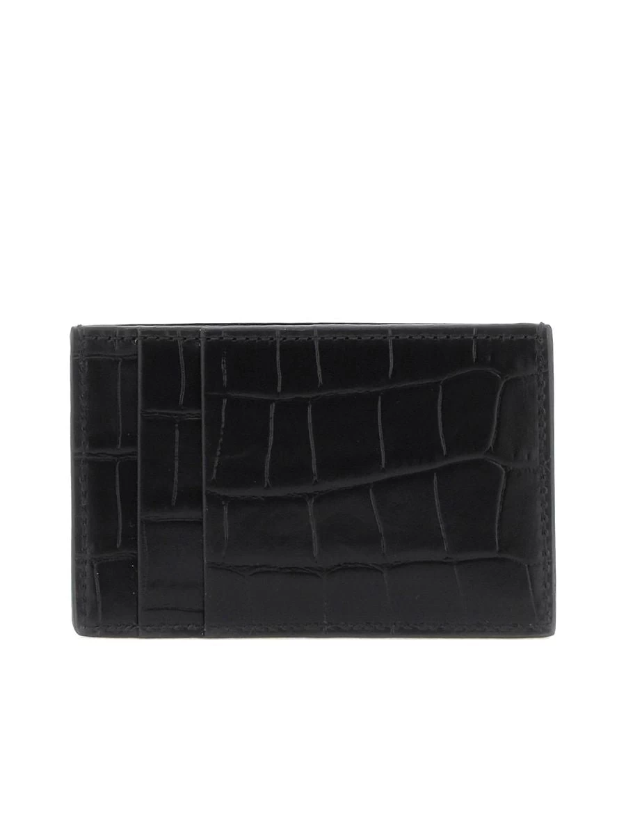 A sleek and sophisticated cardholder, perfect for the discerning gent who appreciates the blend of practical design and rebellious style. This piece is a true representation of Alexander McQueen’s gothic aesthetic, with the iconic skull emblem taking centre stage. Expertly crafted from croc-embossed leather, it offers a subtle nod to luxury while keeping your essential cards organized.