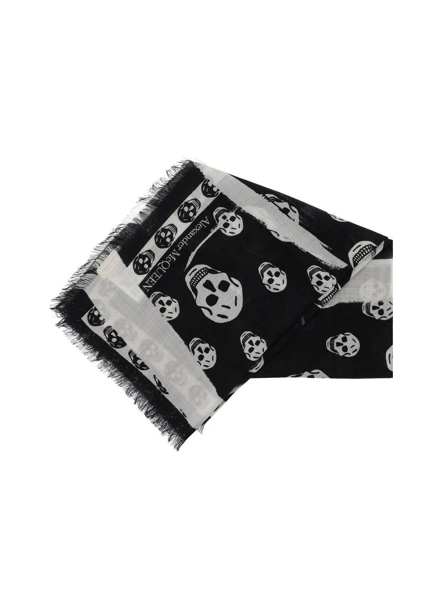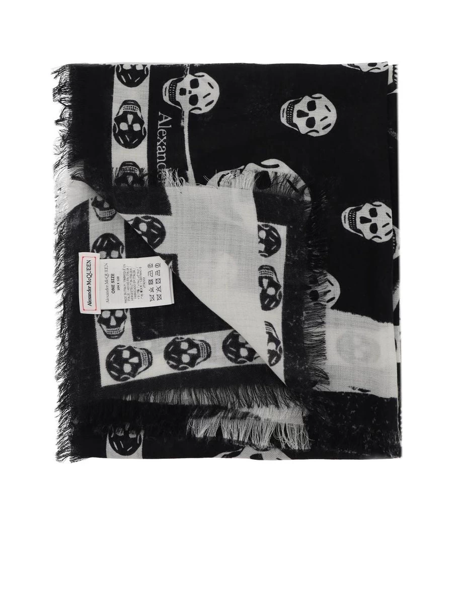 Crafted with exceptional Italian artistry, this lightweight wool twill scarf features a unique Slashed motif overlaying a classic Skull pattern. The design is finished with tasteful fringed edges, infusing a touch of Alexander Mcqueen’s quintessential edgy flair.