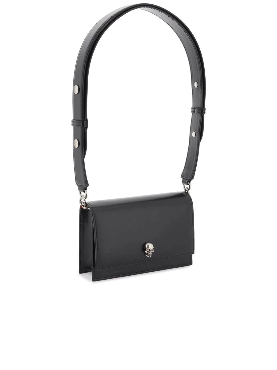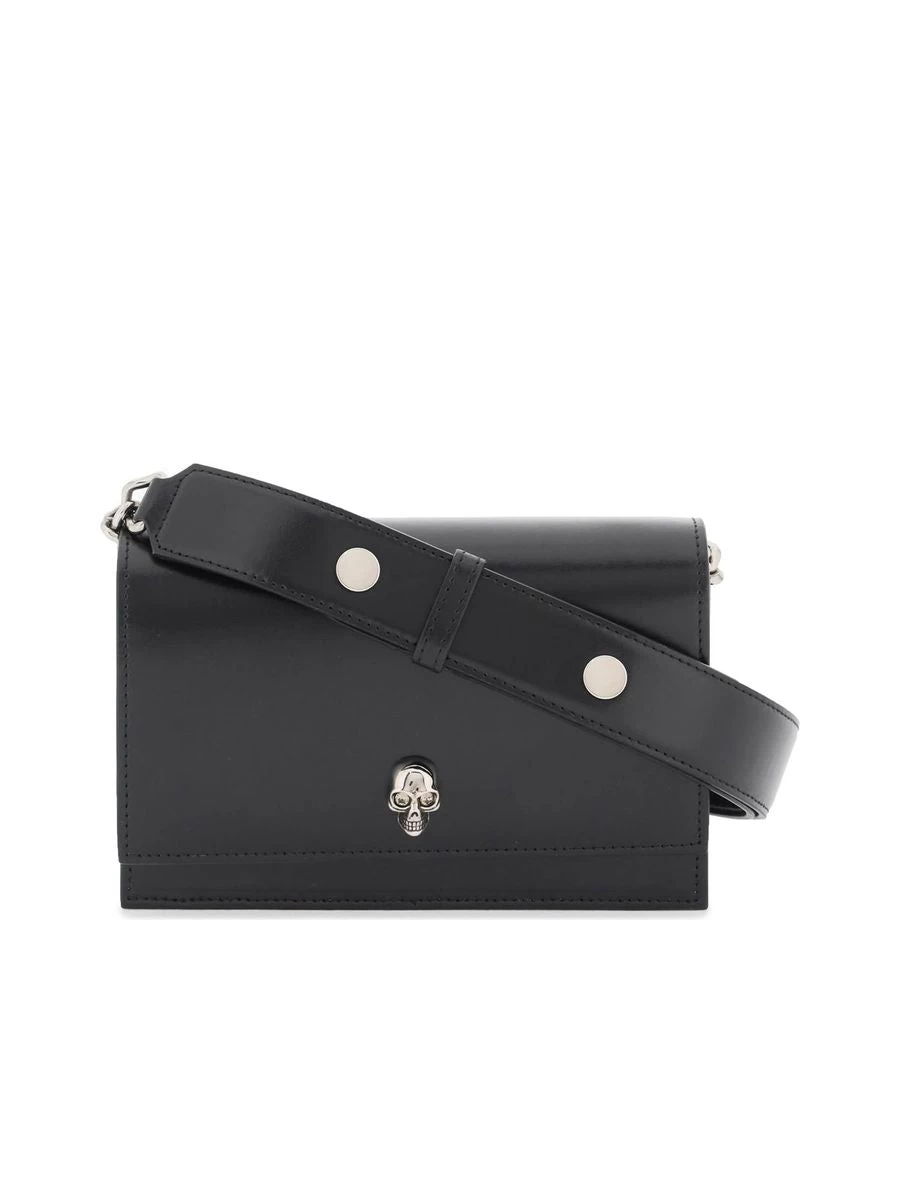 Indulge in the essence of rebellious luxury with this edgy crossbody bag, crafted from the finest smooth leather. Adorned with an iconic Skull embellished with radiant crystals, it exudes a sense of opulence. A magnetic summary closure ensures the safety of your essentials, while the interior boasts a practical card slot. This statement piece is completed with a wide, biker-style adjustable shoulder strap and silver-tone metalware, including a subtly placed logo on the back for that touch of designer prestige.