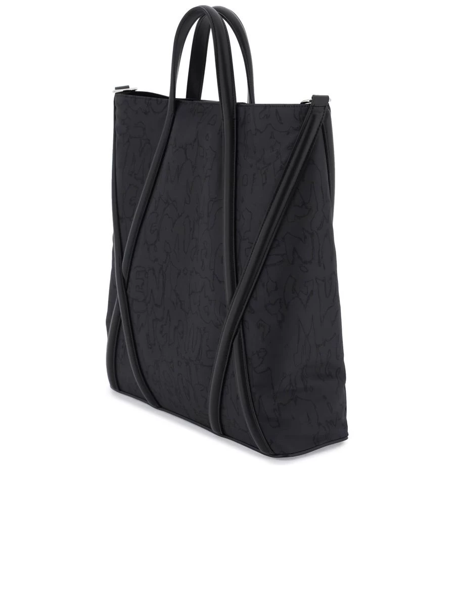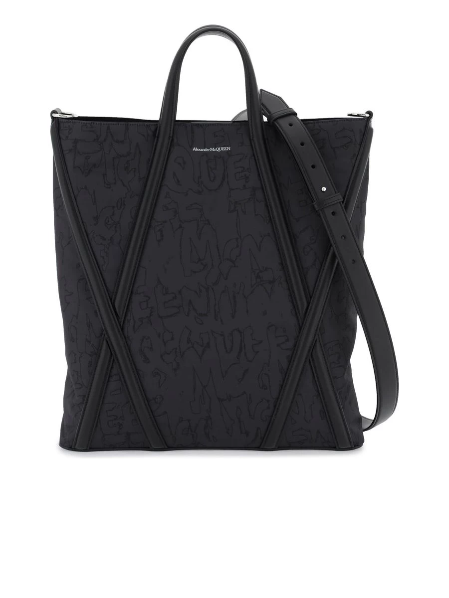 Indulge in the urban charm mixed with luxury with this nylon tote bag that boasts a captivating all-over McQueen Graffiti. Its design is enriched with an exclusive Harness detail, offering a touch of edgy sophistication. Featuring a practical magnetic closure and an organised interior, including a zipper pocket and a card slot. The bag also includes an adjustable and detachable shoulder strap, complemented by gleaming silver-finish metalware.