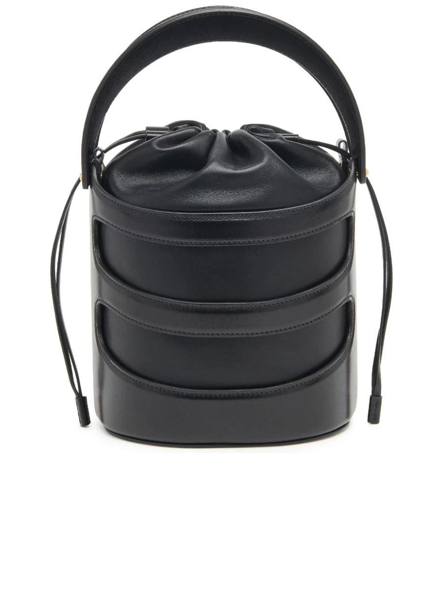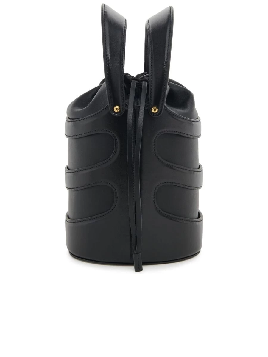 Indulge in the epitome of contemporary luxury with this caged design pouch. Crafted from sumptuous calf leather, it boasts a striking gold-tone logo on the front. The creation is thoughtfully designed with an adjustable and detachable shoulder strap alongside practical top handles. Its main compartment is secured with an elegant drawstring fastening, reflecting the brand’s signature blend of functionality and style ā all without explicitly stating its esteemed origins.