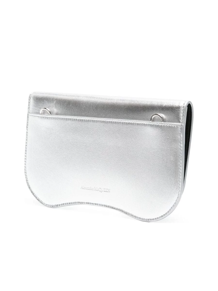 Indulge in the opulence of a metallic effect clutch, designed to add a dose of sophistication to any ensemble. Crafted from supple calf leather, this sleek accessory boasts a signature Seal logo, elegantly complimented by a silver-tone logo plaque. The magnetic foldover top reveals a thoughtfully organised interior, complete with card slots and a slip pocket. Whether you’re gracing an evening soirée or elevating your daywear, it transitions effortlessly with its detachable chain-link shoulder strap.