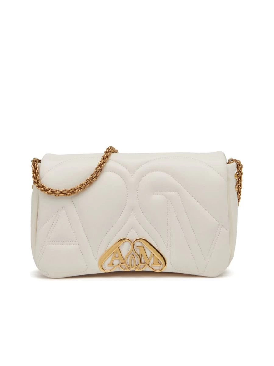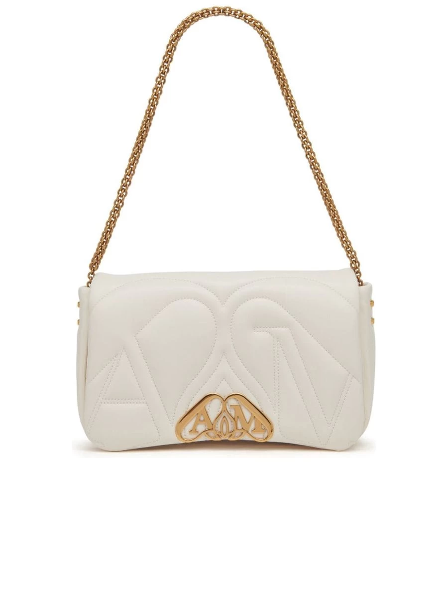 Discover the opulent touch of Alexander McQueen with the small The Seal shoulder bag. Imbued with the brand’s signature edge, this piece is crafted from supple calf leather, exuding luxury in its quilted design. It boasts a silver-tone logo plaque for a hint of prestige, and features both a detachable chain-link shoulder strap and an adjustable leather and chain-link waist strap for versatile styling. Secured with a foldover top and magnetic fastening, its streamlined main compartment and internal pocket will safely house your essentials without compromising on style.