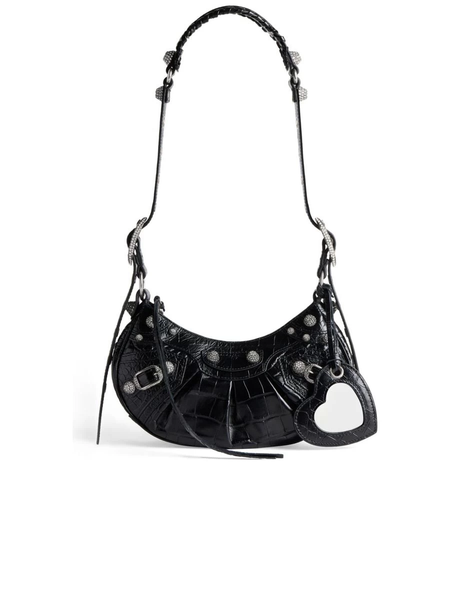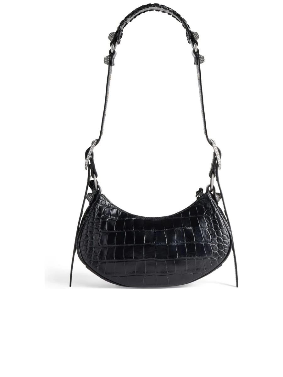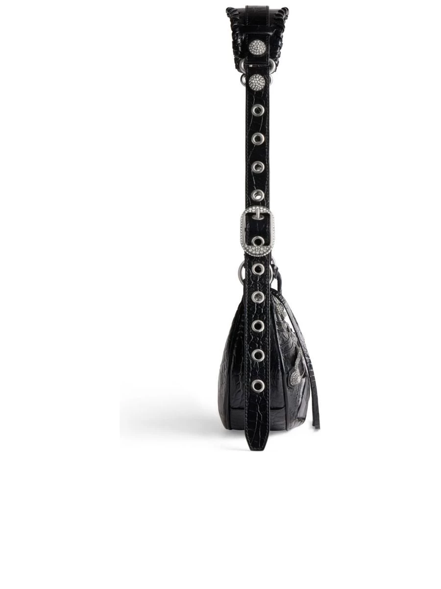 Indulge in luxe fashion with this exquisitely crafted shoulder bag, featuring a sophisticated embossed crocodile effect and embellished with sparkling rhinestones. The bag boasts decorative buckle detailing, complete with a top zip fastening, a well-organized main compartment, and an internal logo patch for a touch of brand prestige. Additionally, a removable pouch and a mirror tag enhance its practicality, while the adjustable shoulder strap allows for versatile carrying options. Crafted from premium calf leather, it embodies a refined aesthetic perfect for the discerning fashionista. Partnered with Good On You, this product aligns with ethical fashion, proudly boasting a ‘Good’ rating.