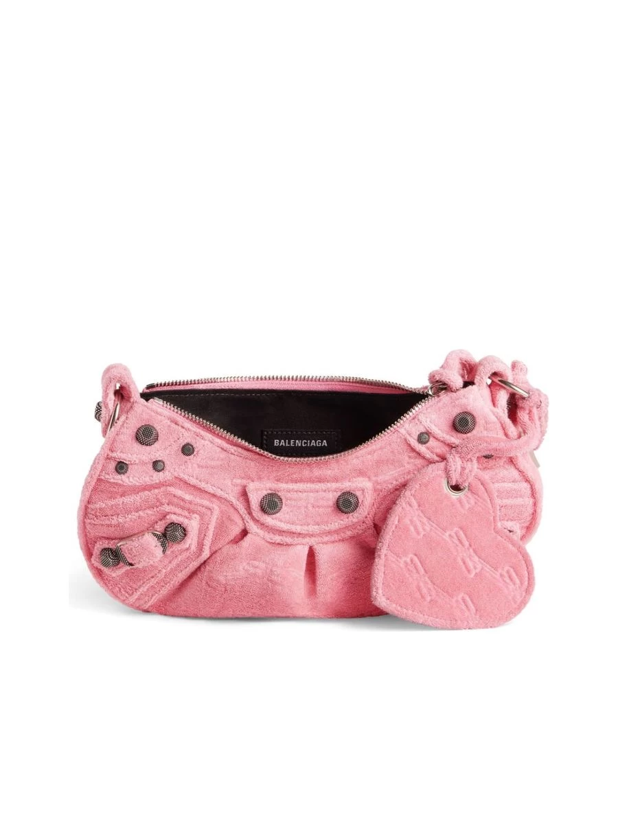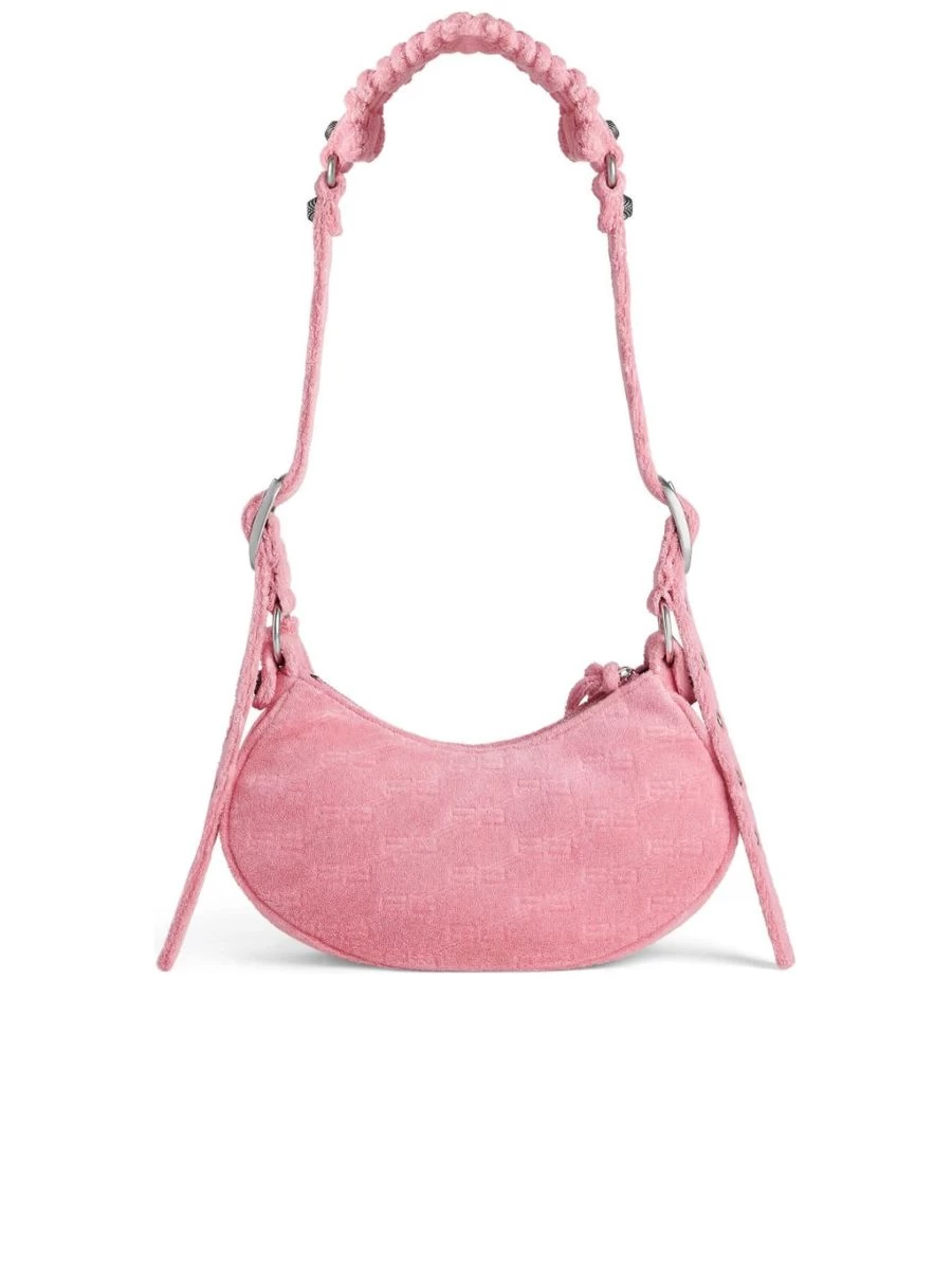 Indulge in the extravagance of a statement accessory with this mini Le Cagole shoulder bag. Adorned with elegant stud and decorative buckle details, it presents a unique blend of charm and edginess. Crafted with a braided trim, the piece is completed with a secure top zip closure, a spacious main compartment, and an internal logo patch, not forgoing the practical mirror tag. The adjustable shoulder strap ensures a custom fit, perfect for daily adventures.