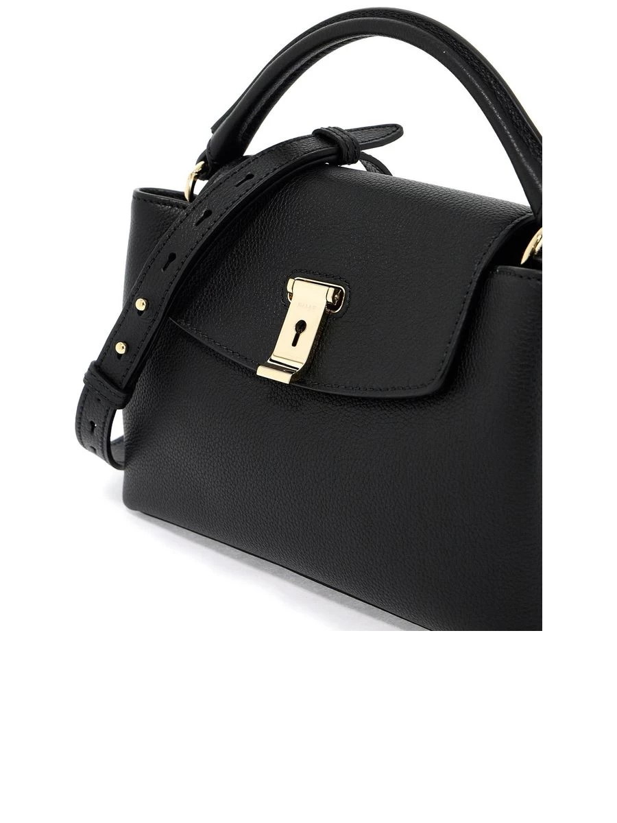 The Layka handbag by Bally, crafted from hammered leather, presents a versatile and refined design. Coming with both a top handle and a supplementary adjustable shoulder strap, it features a Lock Me metal element on the closure. The inside houses two compartments, a zip pocket, as well as additional flat and open pockets, all lined with fabric, and adorned with gold-finished metal accents.