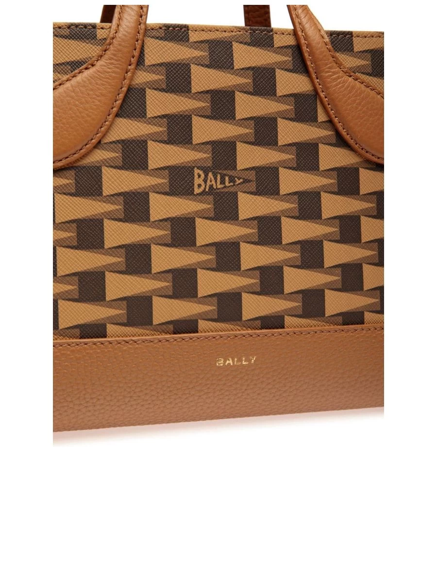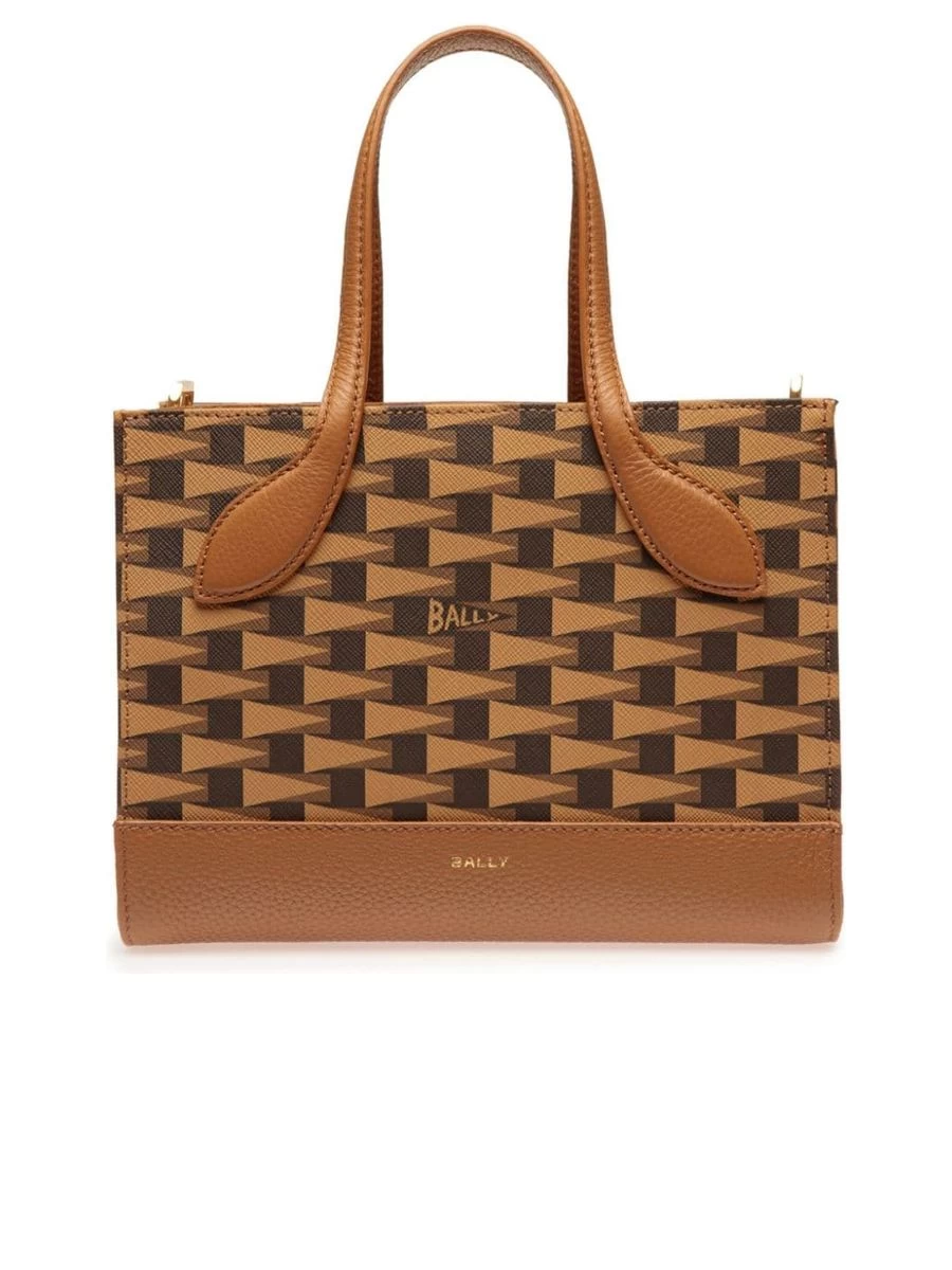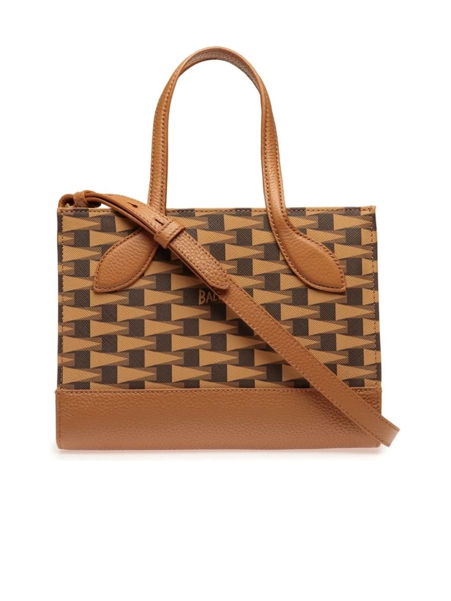 Exquisite tote crafted from a sumptuous blend of calf leather and polyurethane that boasts a refined textured finish. Adorned with an all-over logo print for the brand-afficionado, further complemented by gleaming gold-tone logo lettering that adds a chic touch. The bag sealed with a concealed magnetic closure ensures the safety of your essentials. It features a versatile shoulder strap that is both adjustable and detachable, along with a pair of elegant top handles for a variety of carrying options. Inside, you’ll find a practical internal zip pocket for valuables alongside an internal logo patch, all bound together with a complete lining for an impeccable finish.