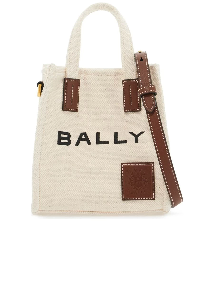 A charming cotton canvas tote bag accented with a contrasting printed logo and luxe leather details, featuring a sleek magnetic closure and an interior that speaks of simplicity and functionality. It’s complemented by an adjustable and removable leather shoulder strap, along with gold-tone metal hardware giving it that final touch of sophistication.