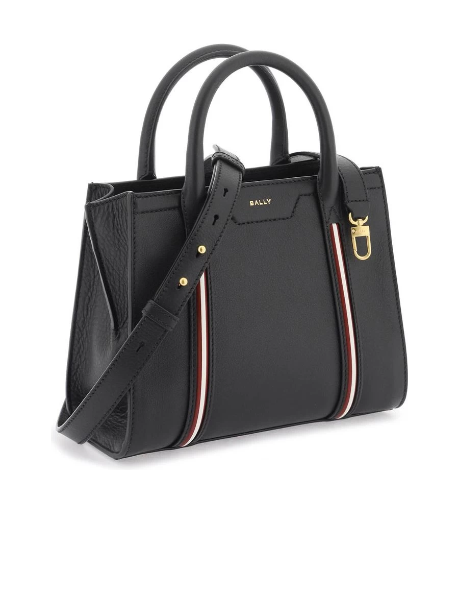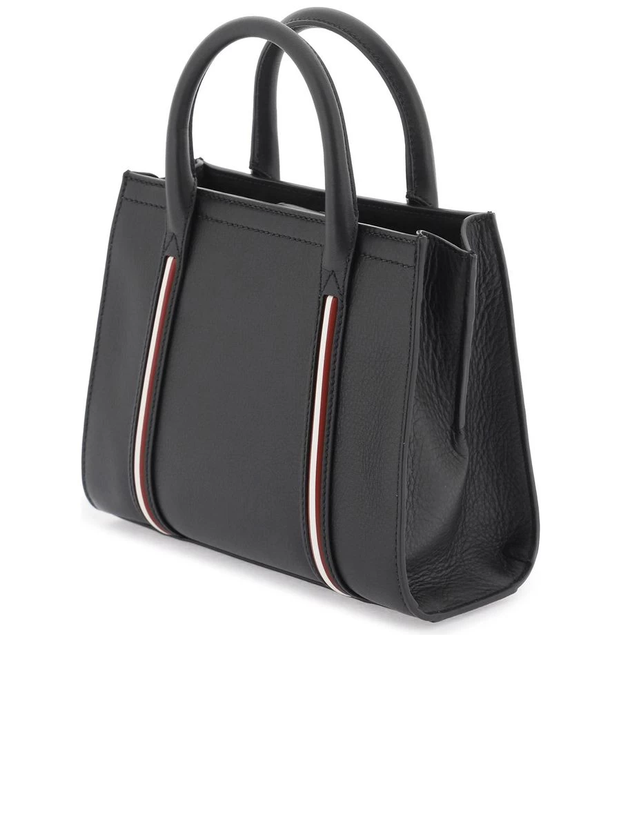 Crafted in sumptuous hammered leather, the Bally Code tote is a testament to enduring style and sophistication. Graced with the iconic Bally Stripe and a gold lettering logo, this elegant accessory opens to a fabric-lined interior featuring a practical open pocket alongside a secure zippered pocket divider. Finished with protective feet, an adjustable and detachable shoulder strap, and gleaming metallic details, it’s a versatile addition to any wardrobe.