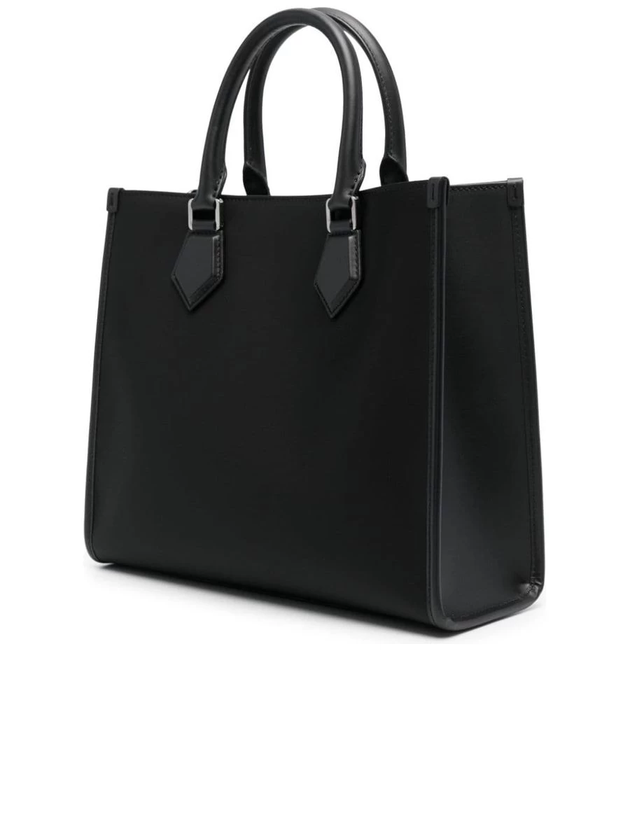 Elevate your daily ensemble with this sophisticated shopper bag. Crafted with attention to detail, it features a sleek leather trim, embossed logo detail on the front, and is complemented with silver-tone hardware. Its functionality is ensured by the convenient concealed magnetic fastening and easy-access internal zip pocket. Exuding versatility, the bag comes with two rolled top handles along with an adjustable and detachable shoulder strap, ideal for any modern urbanite.