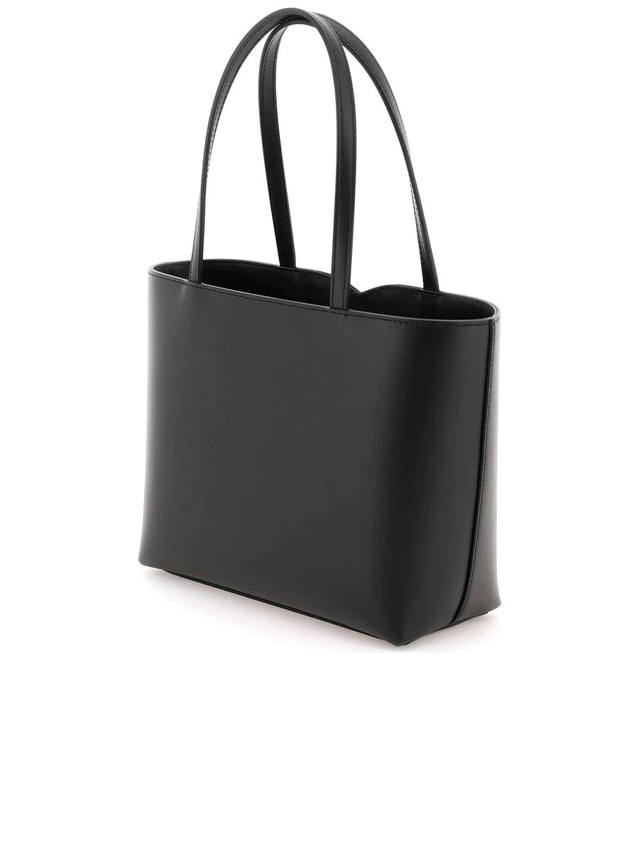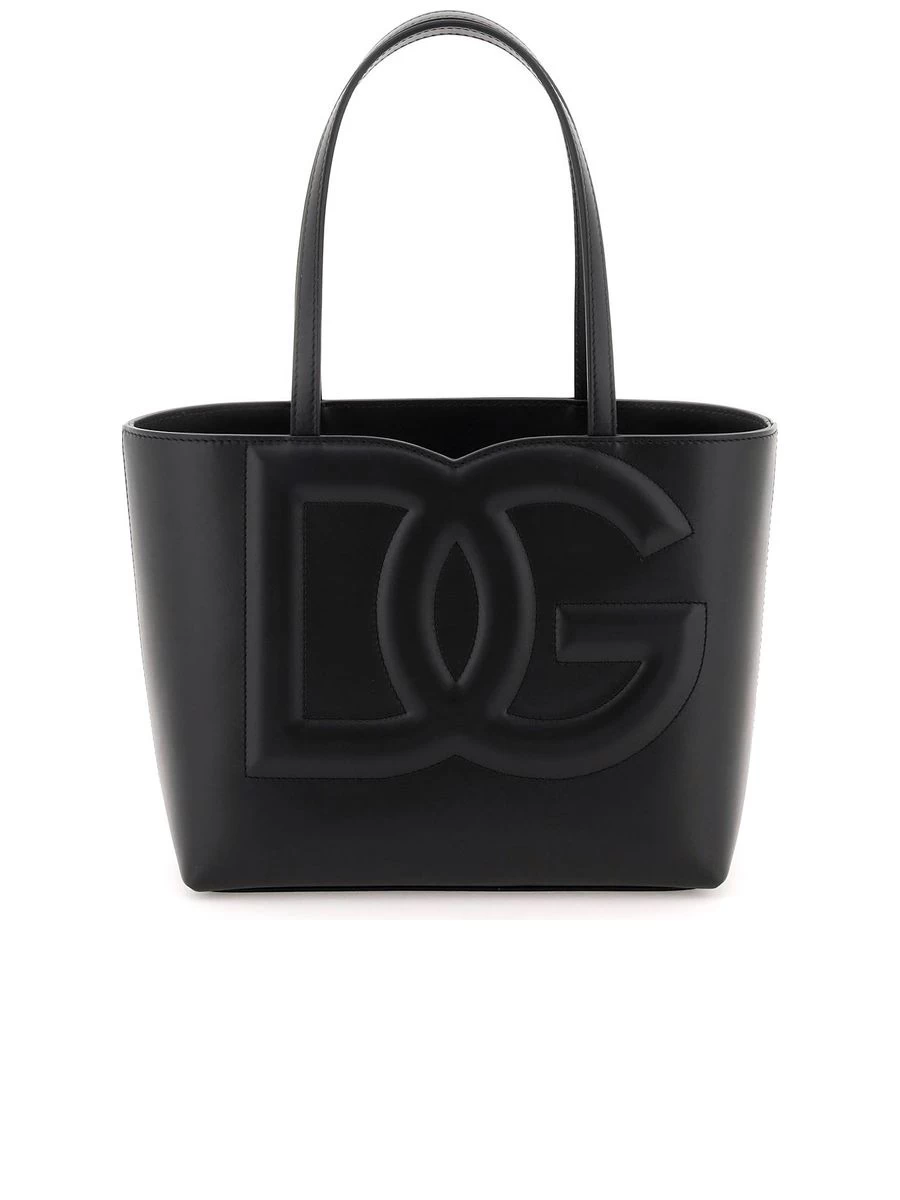 Indulge in the classically styled world of Dolce & Gabbana with this elegant double handle shopping bag. Crafted from smooth calf leather, the piece is meticulously adorned with a stitched maxi DG logo front. The interior, lined with branded fabric, offers practical storage options including an open flat pocket and a zippered compartment, all held together by gold-finished metalware.