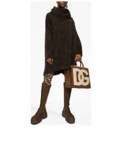 Indulge in a touch of Italian luxury with this stunning handbag. Crafted with expertise, it features a plush shearling detail and an elegantly embroidered logo. The design boasts a main compartment for all your essentials, complete with a secure internal zip-fastening pocket. Circular top handles and a sleek open top add to its sophisticated silhouette, making it an exquisite choice for any sophisticated ensemble.