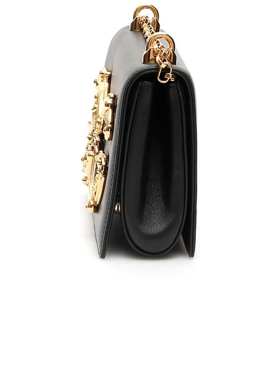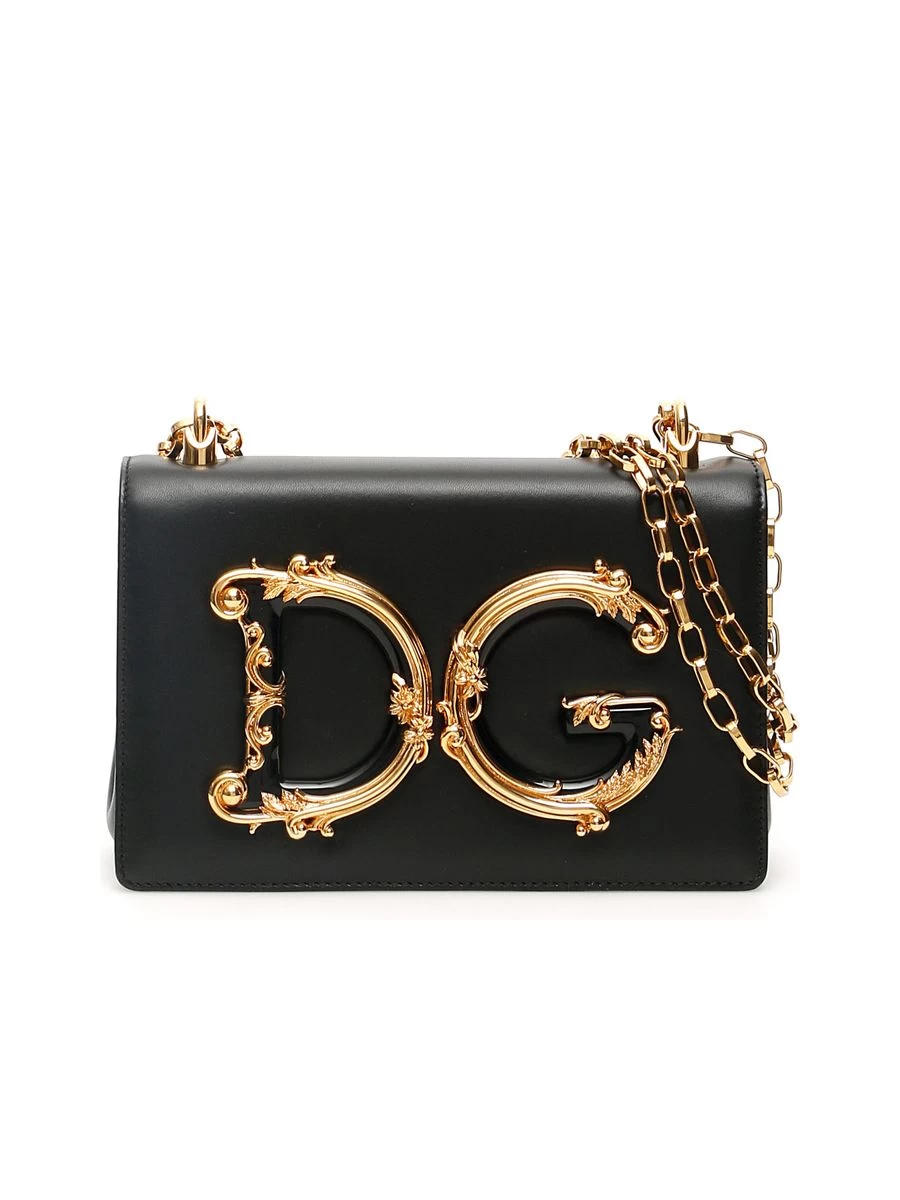 The ‘DG Girls’ bag is a culmination of refined Italian craftsmanship, encased in luscious nappa leather. It features a practical magnetic summary closure and is adorned with the iconic DG Barocco logo. The sliding chain strap enhances its versatility, while gold-finished metalware adds a touch of elegance.