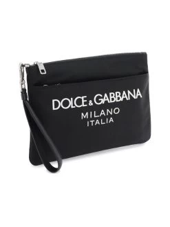 This practical pouch is a stylish accessory for keeping your essentials organised. It features a discreet rubberized logo, providing a subtle brand accent without overpowering the design. The zippered closure ensures your items are secure, while the lined interior and additional front pocket offer structure and extra space. It comes with a handy detachable wrist handle, making it ideal for on-the-go convenience.