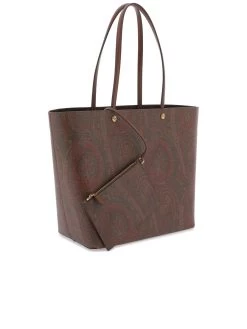 The Essential tote bag by Etro exudes a blend of traditional and contemporary aesthetics. Fashioned from the house’s signature Paisley jacquard, complemented by leather linings and details, it offers a sophisticated take on the classic tote silhouette. The interior is lined with soft suede and includes a handy removable pouch, while the gold-finished metalware adds a touch of luxury.