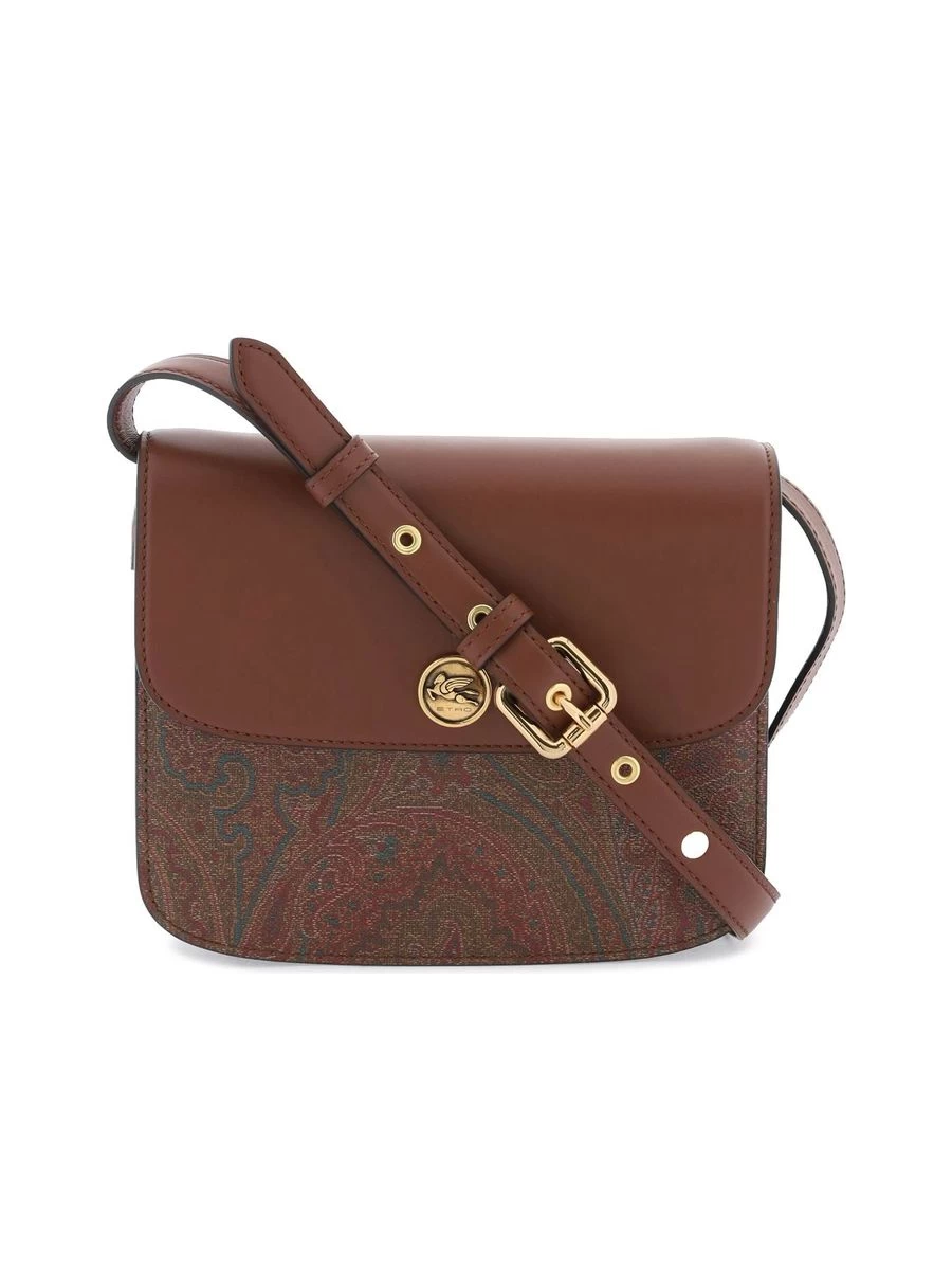 A quintessential accessory for everyday elegance, this Essential shoulder bag is crafted from coated canvas adorned with the iconic Paisley motif. The design features a suave leather flap that secures with a magnetic closure. Its interior is lined with sumptuous suede, organised in three gusseted compartments, and complemented by an additional rear slit pocket. The shoulder strap is both adjustable and detachable, catering to your preference, while the aesthetically pleasing gold-finished metalware adds a hint of sophistication.