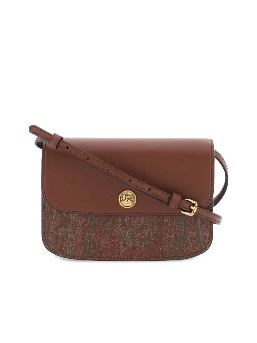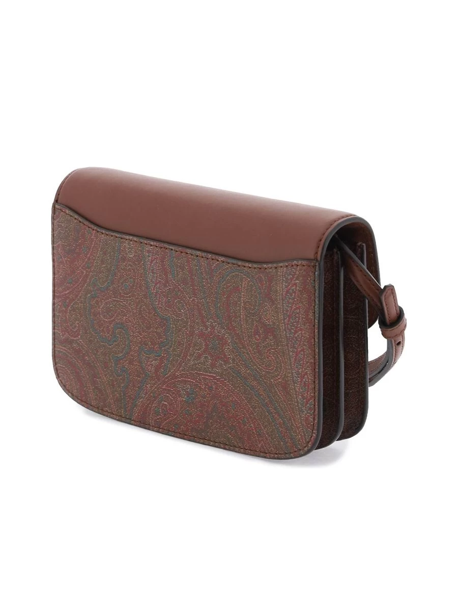 Crafted from coated canvas featuring the iconic Paisley motif, this ETRO shoulder bag showcases a sophisticated leather flap. Its interior is lined in soft suede, and organized into three gusseted compartments for all your essentials. A rear slit pocket adds convenience, while the detachable and adjustable shoulder strap offers versatile carrying options. Each detail is accentuated by elegant gold-finished metalware for a luxurious touch.