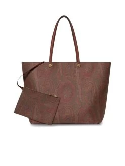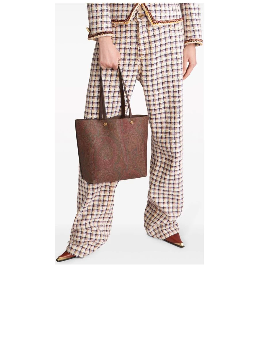 Indulge in the epitome of luxury with Etro’s signature paisley print shopper. Crafted from premium calf leather for a sumptuous feel, this bag boasts a spacious main compartment for all your essentials and comes with a handy removable pouch. Designed and made in Italy, this shopper is both practical and chic, perfect for the stylish individual on the go.