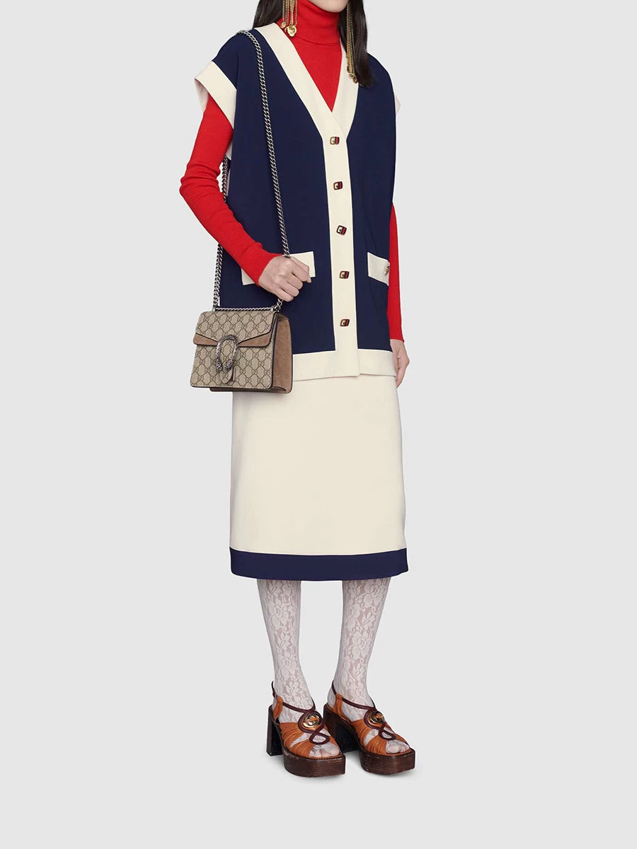 - Sliding chain strap can be worn as a shoulder strap or as a top handle