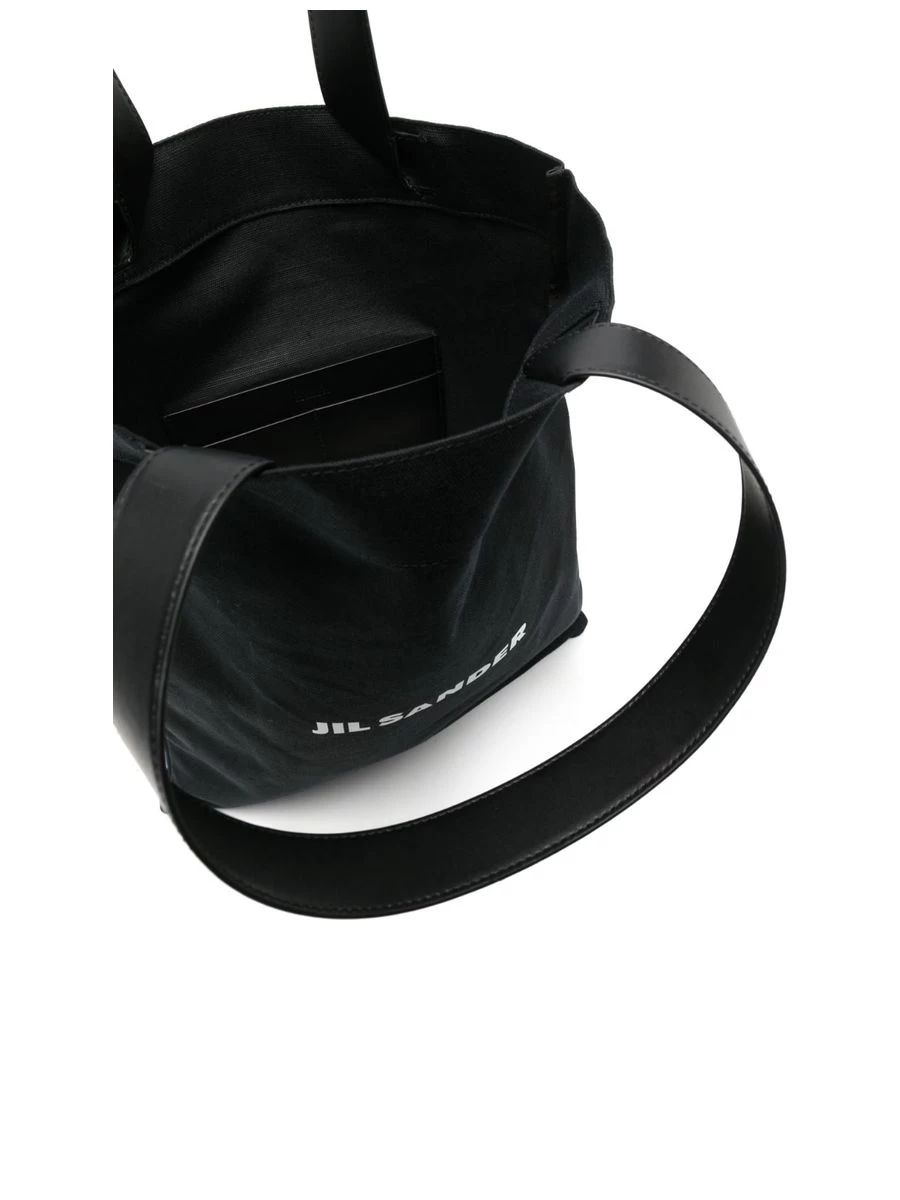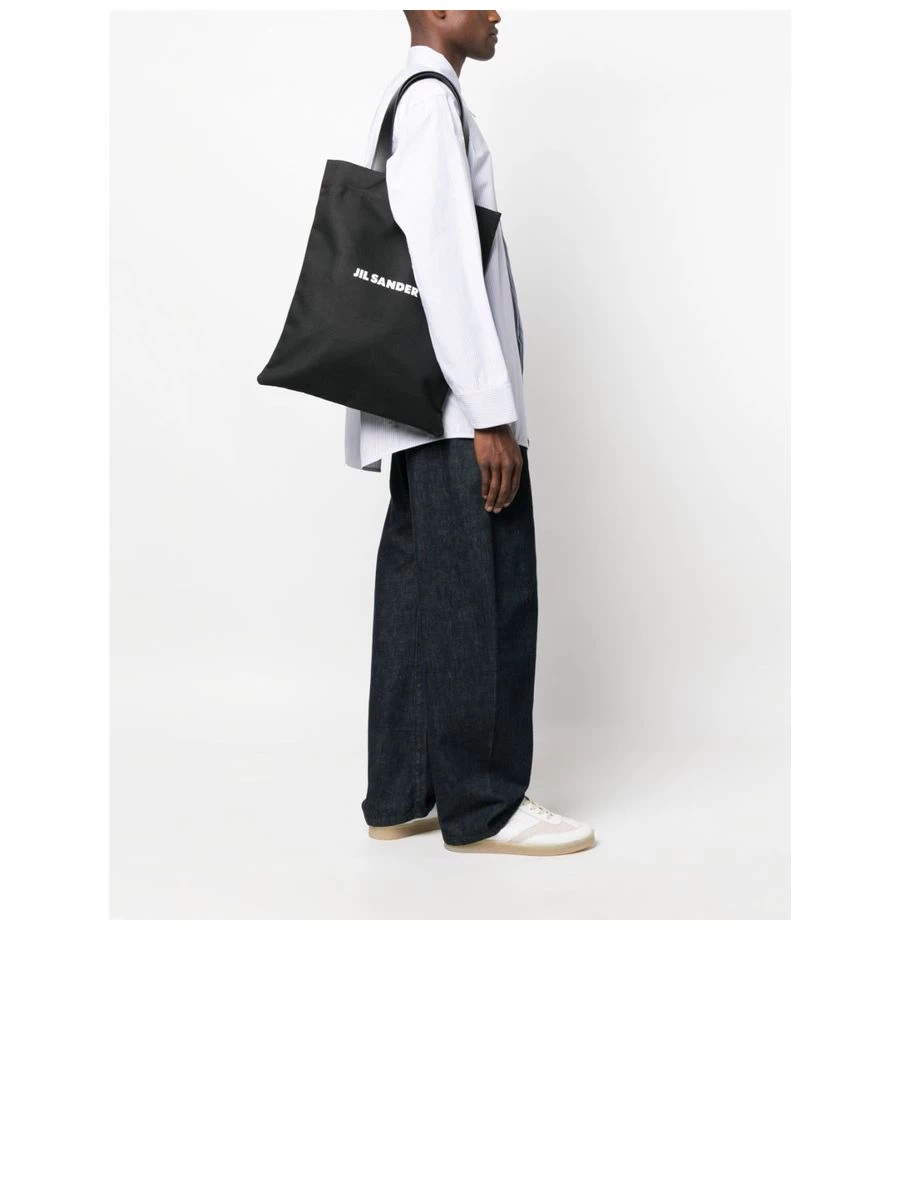 Harness the minimalist elegance of Jil Sander with this sophisticated tote bag. Crafted in Italy, it showcases a crisp contrast logo print on the front, set against a premium cotton-linen blend framed by sleek calf leather trims. With its spacious design and sturdy flat top handles, it’s the perfect companion for both refined and casual ensembles.