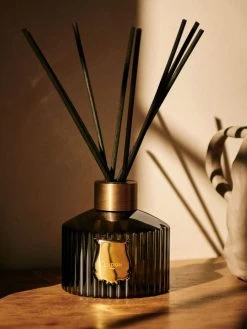 - Handcrafted in the same glass manufacture than the candles, the Diffuser is topped with a 100% recyclable aluminum ring. Through it, you place 8 natural, black rattan sticks.