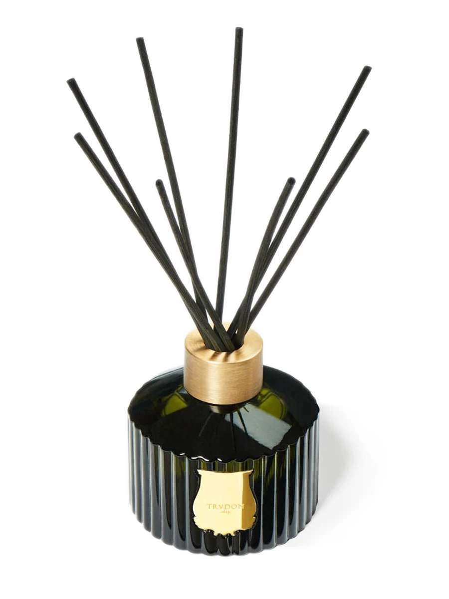 - Shaped out of the same emblematic Trudon-green glass, the 350ml fluted container is adorned with a gold emblem.