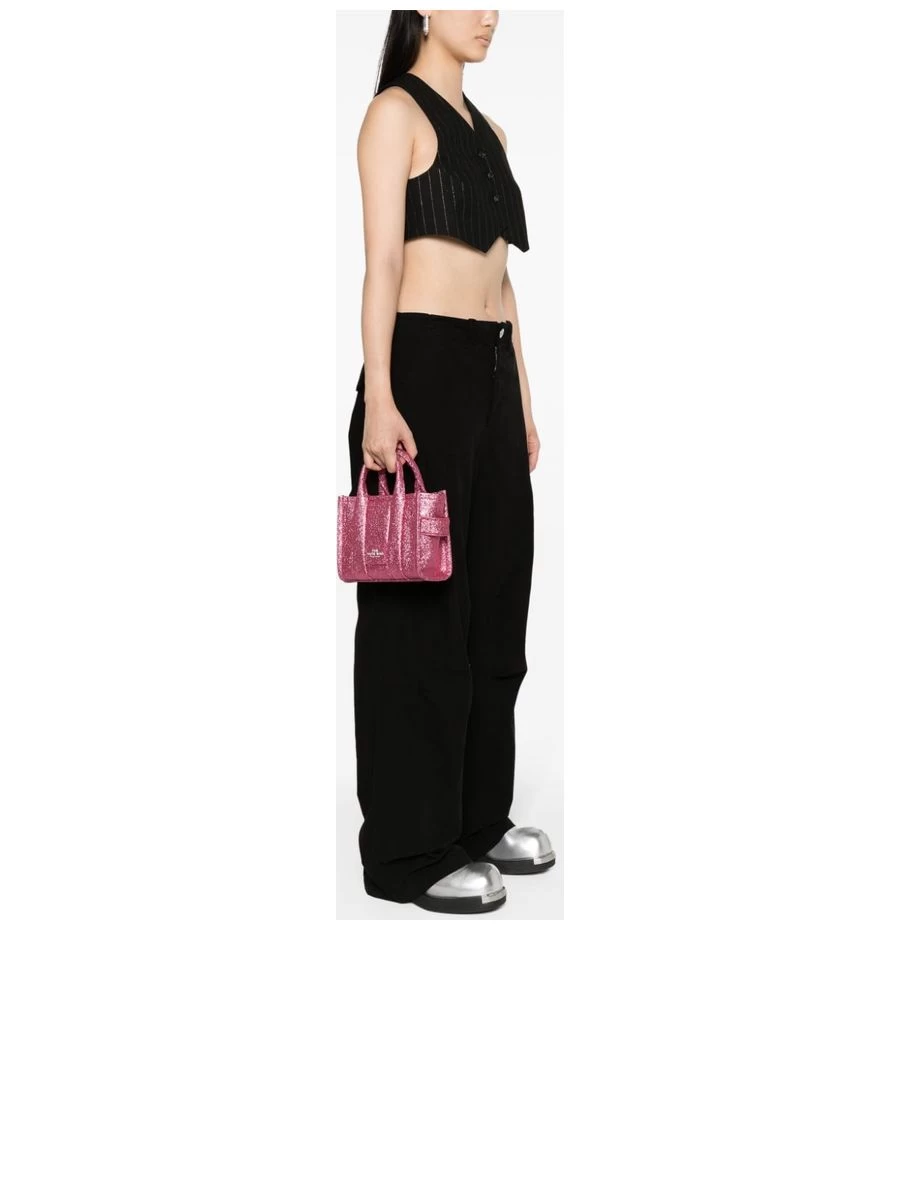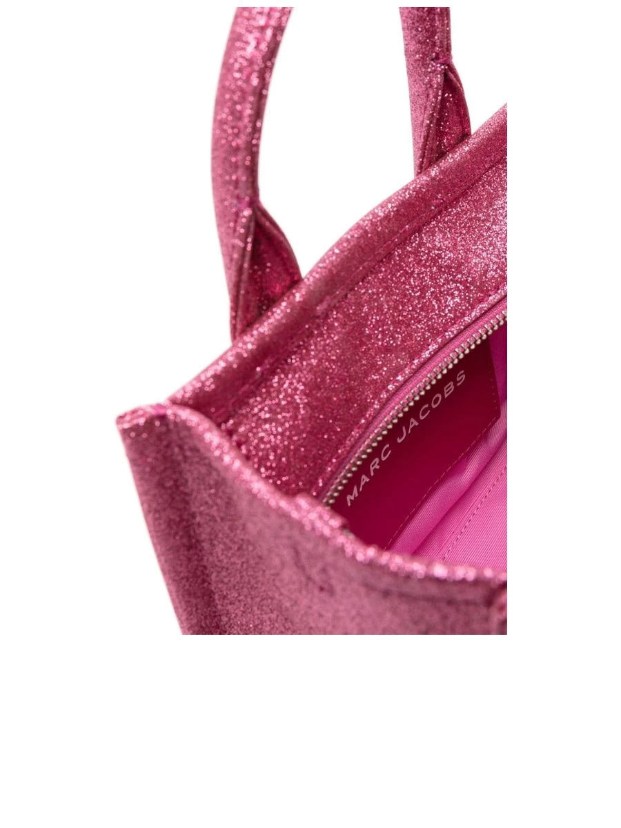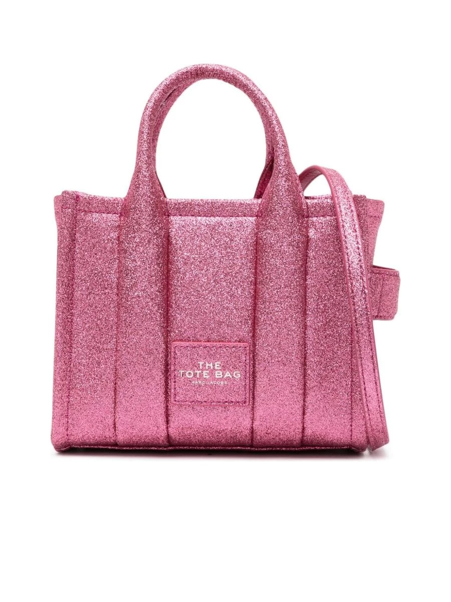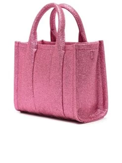 A dazzling finish to any style, this shopper bag boasts glitter detailing and a front logo patch for a touch of brand prestige. It comes with a versatile strap system, featuring both an adjustable and detachable shoulder strap as well as rolled top handles, ensuring comfort and adaptability for any look. Its open top conceals a sealed main compartment, internal top zip, slip pocket, and a soft full lining, all enclosed with unique silver-tone hardware. A protective dust bag also accompanies the bag for added longevity.