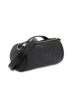 Indulge in the perfection of practical luxury with this sophisticated duffle handbag. Crafted from finely grained leather, it features an understated embossed logo and a seamlessly integrated zipper closure. Inside, the leather lining is equipped with a handy credit card slot. The versatility extends with its top handle paired with a removable and adjustable shoulder strap completed in polished gold-finished metalware.