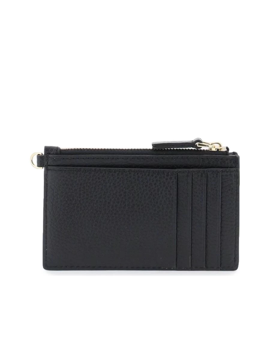 Dive into the world of practical elegance with this wrist wallet from Marc Jacobs. Crafted in sumptuous grained leather, it features a secure inner key ring, a zippered compartment, and multiple slots to organize your cards. Effortlessly carry it using the removable leather handle adorned with gold-finished metalwareāa chic accessory that combines functionality with style.