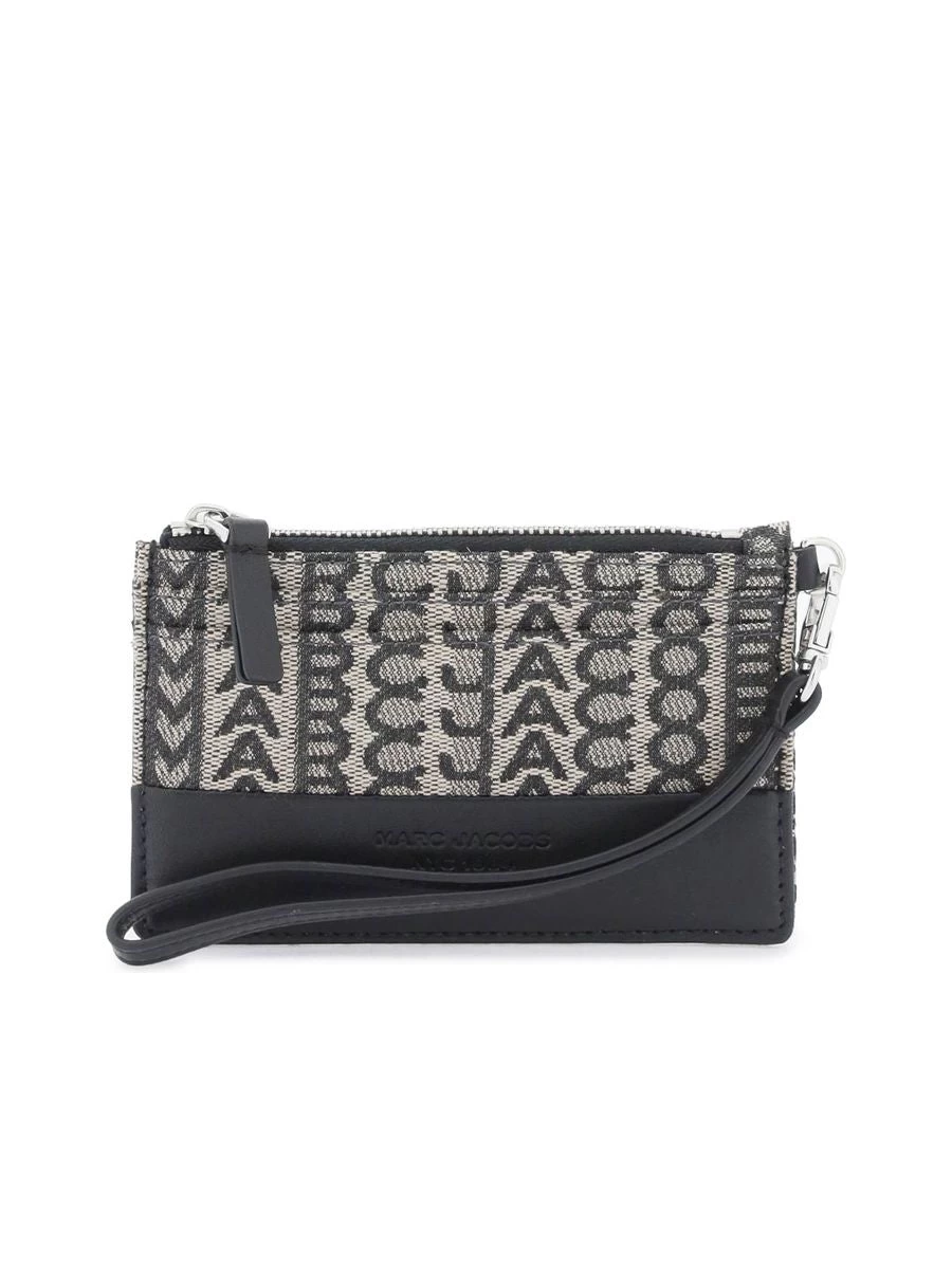 Indulge in the elegance of the Monogram Top Zip Wristlet, a chic accessory to carry your essentials. This wrist wallet is crafted in a blend of jacquard canvas featuring a monogram pattern and leather trimming. Twill lining, multiple compartments including a zippered pocket with a key ring, and a detachable leather handle elevate the practicality, while the embossed logo and silver-finished metalware add a touch of style. Designed with convenience in mind, it’s perfect for on-the-go storage with a sophisticated twist.