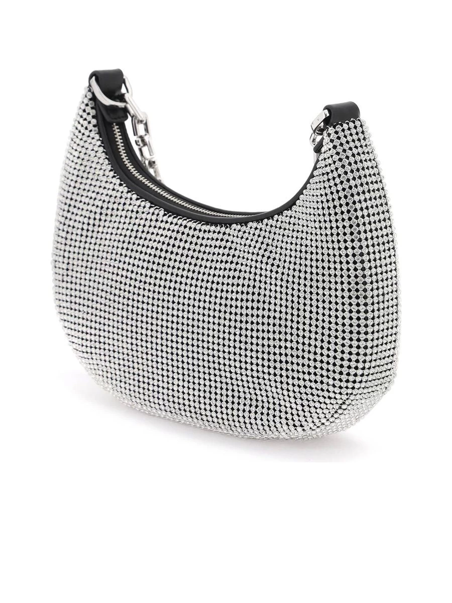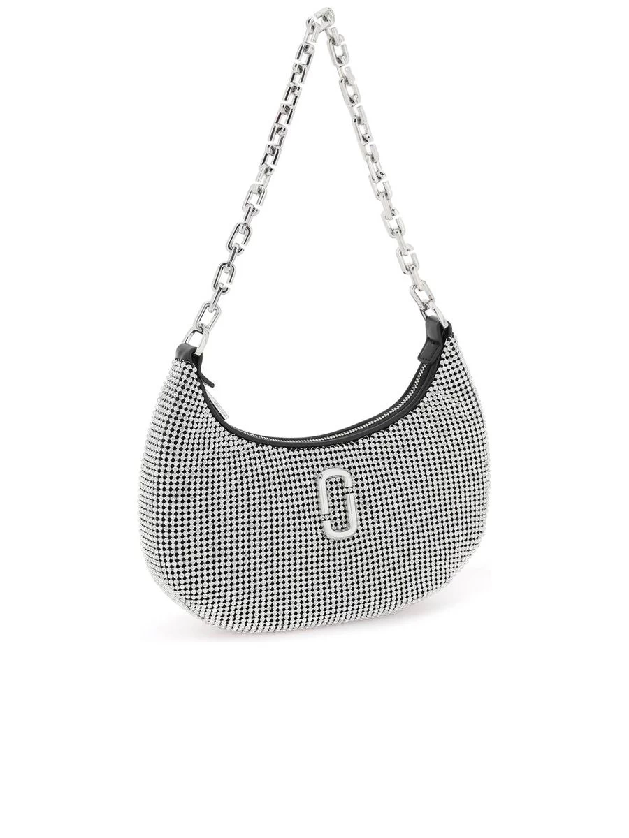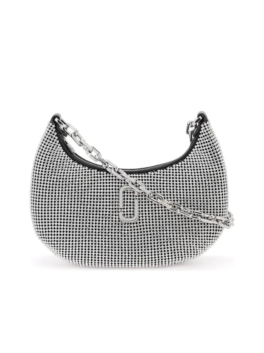 Indulge in the sparkle of the rhinestone-embellished shoulder bag for a statement accessory that complements your look with elegance. Crafted with meticulous attention to detail, it showcases a sleek metal J Marc emblem, lending a touch of luxe. The silhouette, neatly secured with a top zip, opens to a leather-lined interior featuring handy card slots. Its chain strap brings versatility and sophistication to any ensemble.