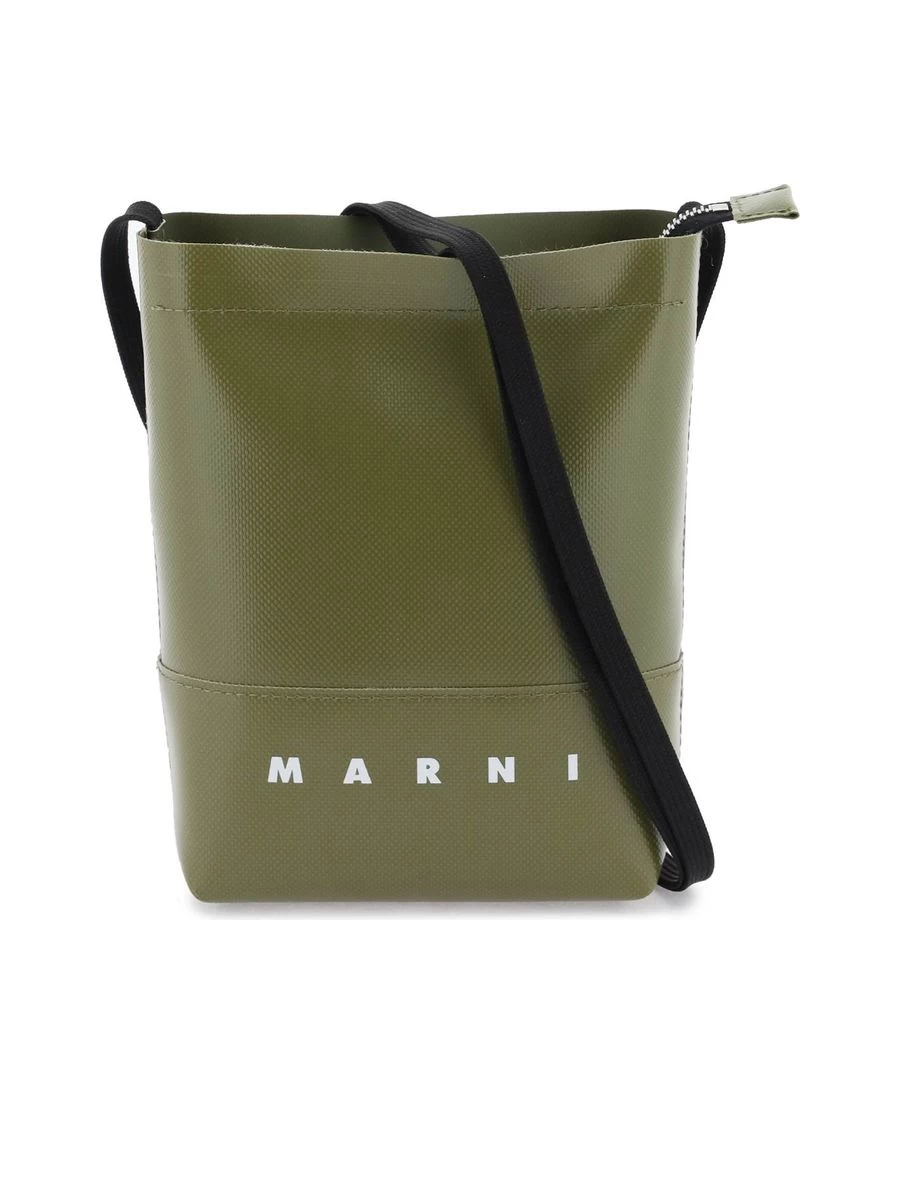 This crossbody bag from Marni is a sophisticated example of the brandās flair for merging high-quality materials and modern design. Crafted from a durable technical canvas and adorned with a striking, contrasting logo, this piece reflects an urban charm with its sleek lines and minimalist aesthetic. The unlined interior and the practical, adjustable fabric shoulder strap underscore its functionality, making it an ideal choice for everyday use.