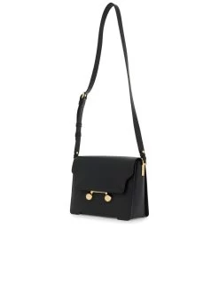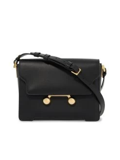 Effortlessly sophisticated and unmistakably modern, this exquisite shoulder bag from Marni is crafted from the finest bovine leather, adorned with golden metal half spheres. A secure magnetic closure opens to reveal a sumptuously lined leather interior with a practical open pocket, all carried by an elegantly adjustable strap.
