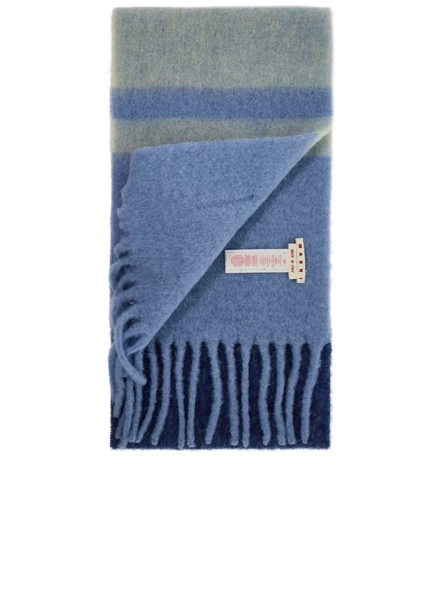 Wrap up warm with this Marni scarf crafted from a cosy mohair blend. Its striped detailing and fringed ends add a hint of elegance to any outfit, finished with a subtle satin branded label for an understated flourish.