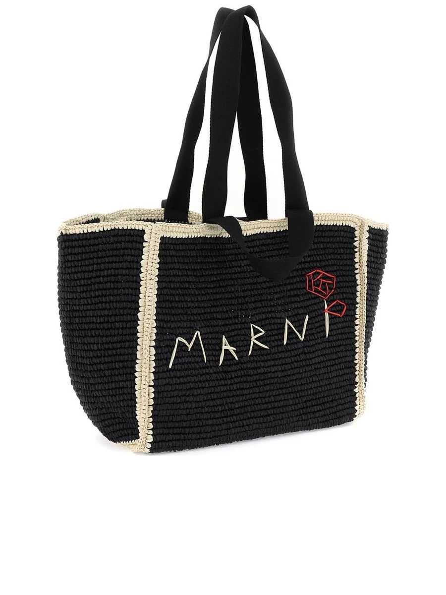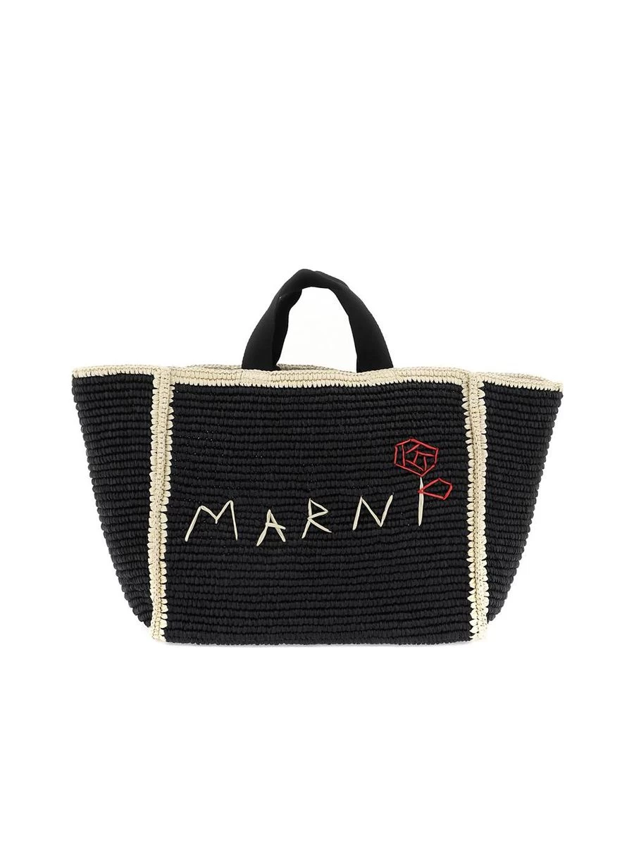 Step out in style with the Marni Sillo medium tote bag. Crafted with a macramé knit, it exudes a raffia effect that adds a natural touch to your ensemble. A prominent embroidered logo offers a dash of brand prestige. Dual handles afford you carrying versatility, perfect for a relaxed yet chic accessory for your daily ventures.