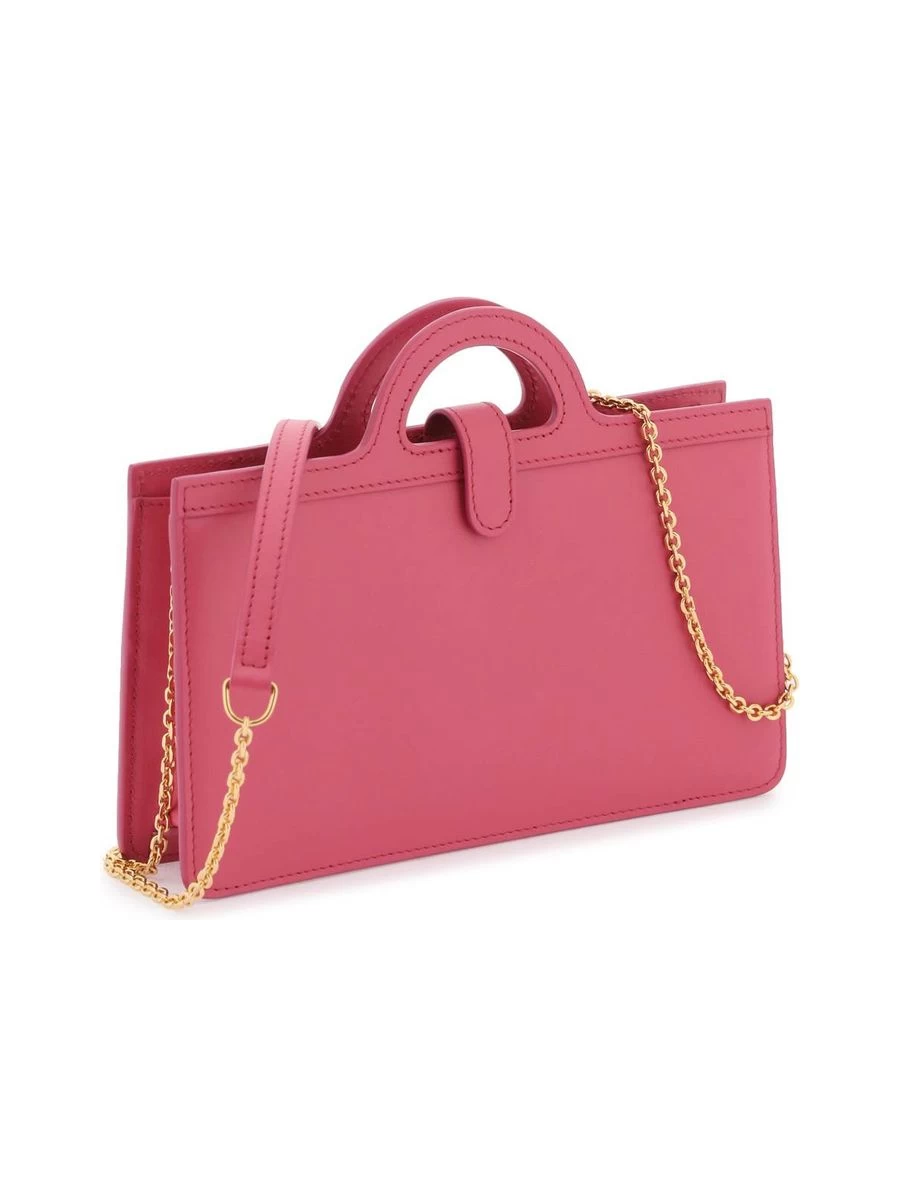 This chic mini crossbody bag features smooth leather craftsmanship with an elegant gold-tone logo detailing the back. The snap-summary closure opens to a leather and fabric interior equipped with card slots and a zippered compartment, making organization sleek and simple. A removable chain shoulder strap adorned with a leather shoulder rest adds a touch of sophisticated versatility ideal for any occasion.