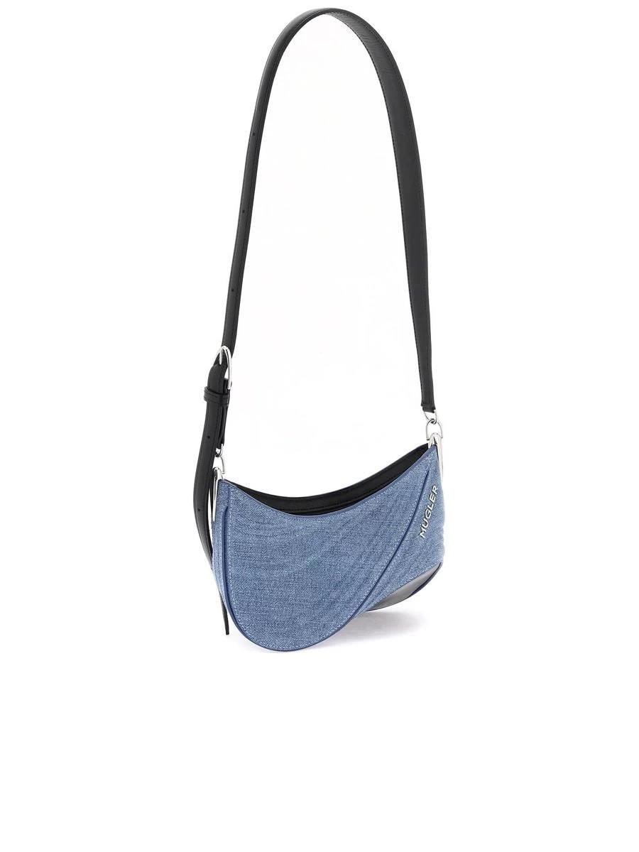 Indulge in the unique aesthetic of the Denim Spiral Curve shoulder bag, a contemporary twist on classic design. Crafted with pure cotton denim and smooth leather detail, its spiral shape and rounded edges are a true testament to signature craftsmanship. Offering practicality without sacrificing style, it comes complete with a zip closure, a microfiber suede-lined interior featuring a leather card slot, and an adjustable handle for bespoke comfort. Metallic accents bring a sophisticated silver finish to this eye-catching piece.