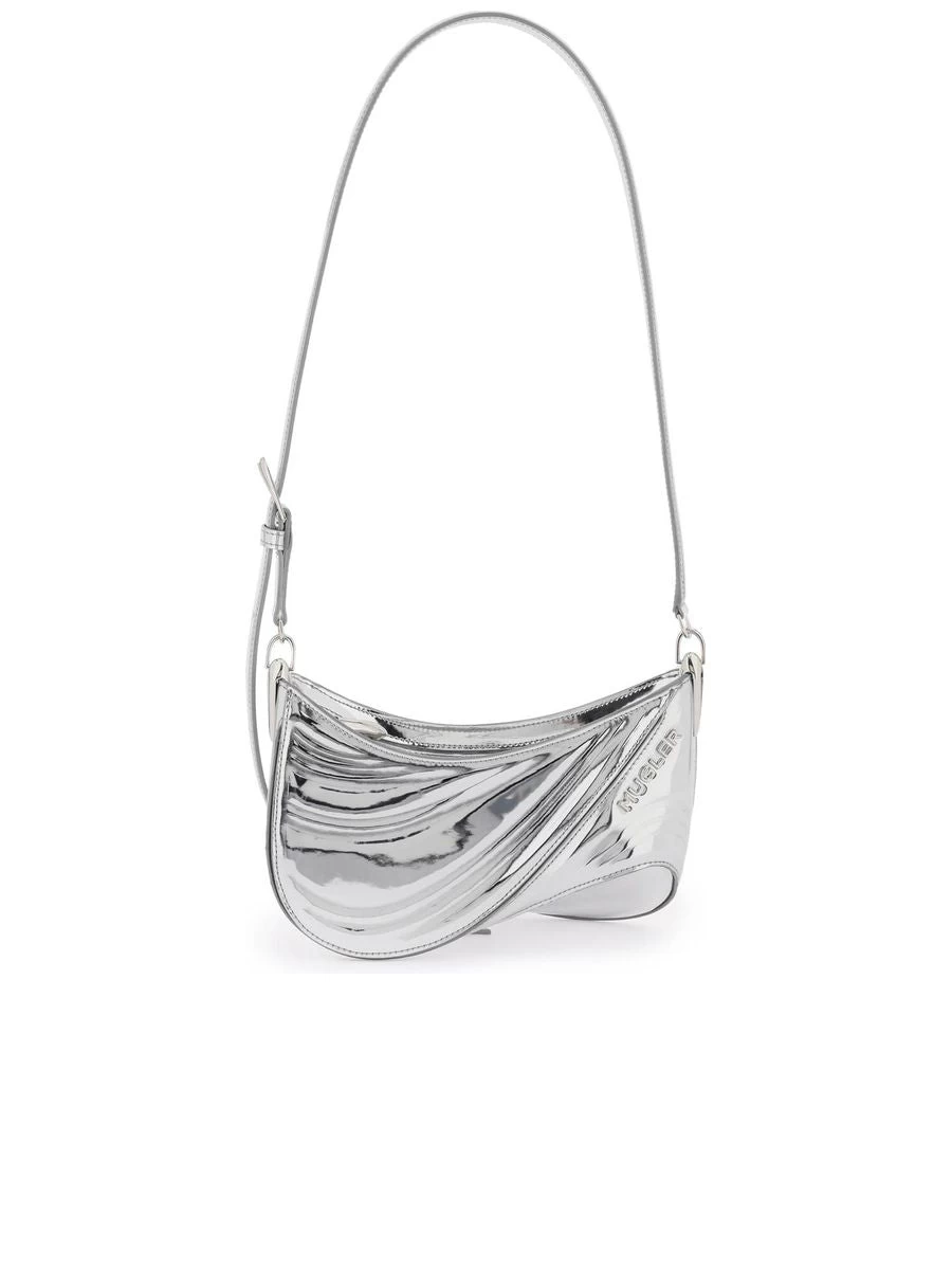 Step into the world of futuristic accessorising with this mesmerising handbag from Mugler. Expertly crafted to mirror the avant-garde cut-outs featured in the label’s sartorial pieces, this bag boasts a lustrous lumbering spiral design. It comes complete with a smooth suede interior, a subtle leather card slot to keep your essentials organised and an elegant adjustable shoulder strap for a comfortable carry. Finishing touches include the slick silver-toned metal lettering logo that encapsulates its edgy yet elevated aesthetic.