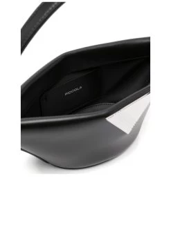 Embrace the polished allure of the Piccola shoulder bag, meticulously crafted by The Attico. This chic accessory features a sleek, polished calf leather composition, topped with a distinct silver-tone logo plaque for a signature edge. A magnetic fastening secures the main compartment, which is complemented by an internal slip pocket ideal for your essentials. An adjustable top handle ensures a personalized carry. With its Italian craftsmanship, this piece is a testament to modern luxury and style.