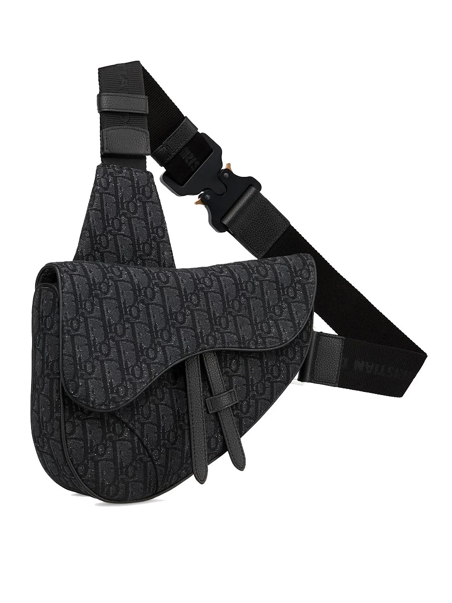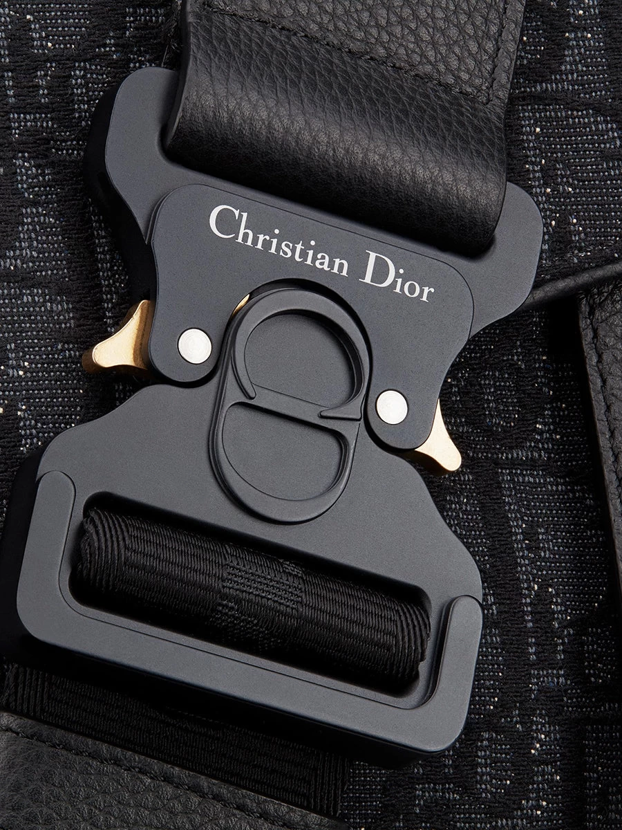 - Adjustable ‘CHRISTIAN DIOR’ nylon jacquard shoulder strap with leather detailing