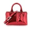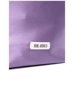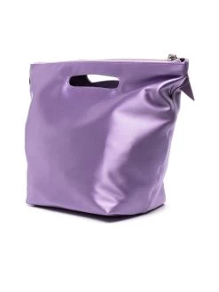 Indulge in the opulence of a gleaming shopper bag, featuring a satin finish that captivates the eye. This elegant accessory boasts a logo patch front and centre, and is thoughtfully designed with a detachable shoulder strap for versatile styling. The cut-out handle adds a modern twist, while the zippered top secures your belongings in the main compartment. Crafted with a keen eye for detail, it presents a stylish and practical choice for your accessory collection.